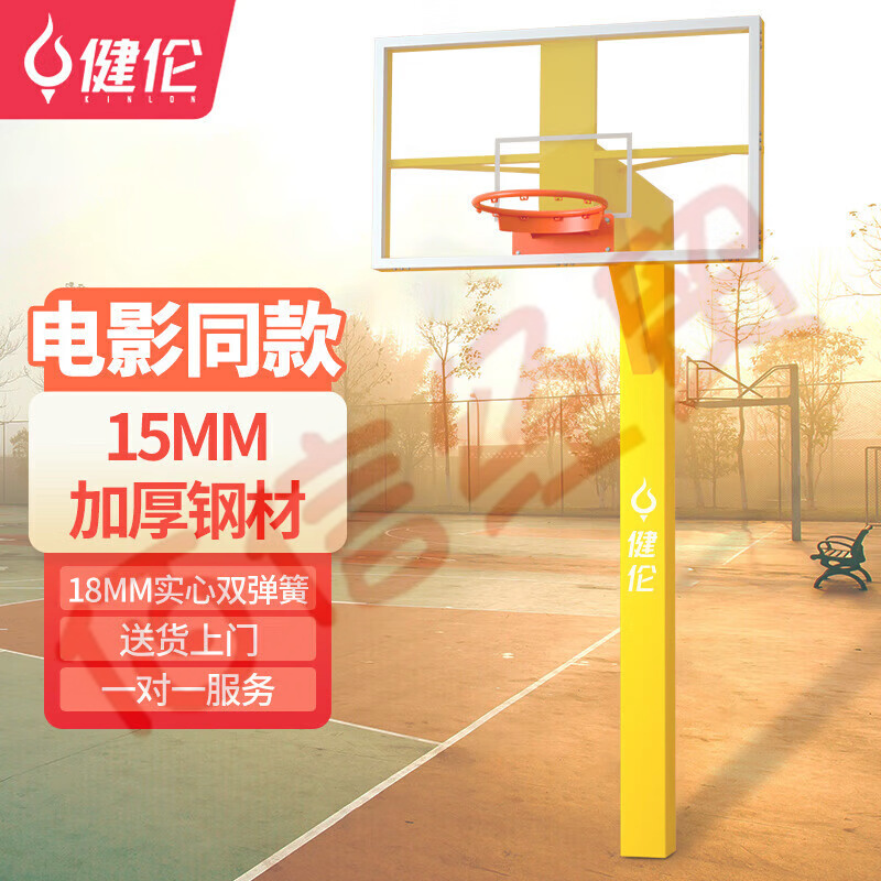 健倫(JEEANLEAN)JLAA179籃球架 標(biāo)準(zhǔn)成人戶外地埋籃球架黃色 自營