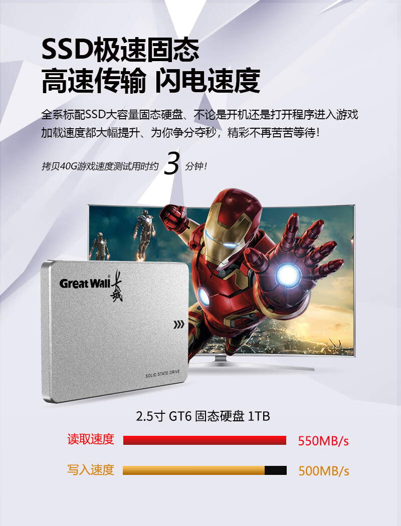 長(zhǎng)城(Great Wall)GT黑金系列 SSD固態(tài)硬盤 SATA3.0接口臺(tái)式機(jī)筆記本固態(tài)硬盤 GT6 旗艦版 1TB 黑金SATA3.0 自營(yíng)