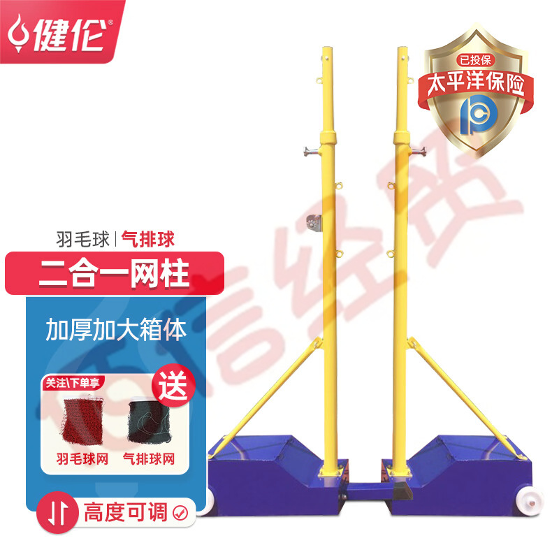 健倫羽毛球網(wǎng)架氣排球網(wǎng)架移動比賽 二合一可升降款 含兩網(wǎng) 自營