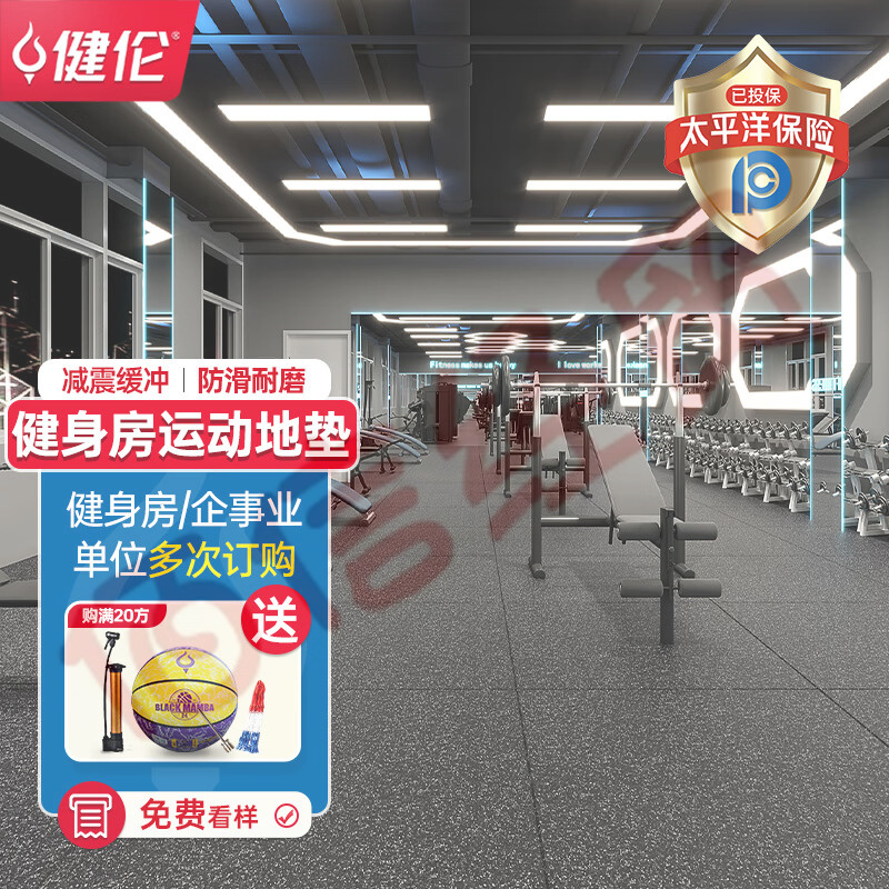 健倫健身墊隔音地膠墊橡膠地墊防滑減震防滑緩沖地板50*50*5.0帶槽款 自營