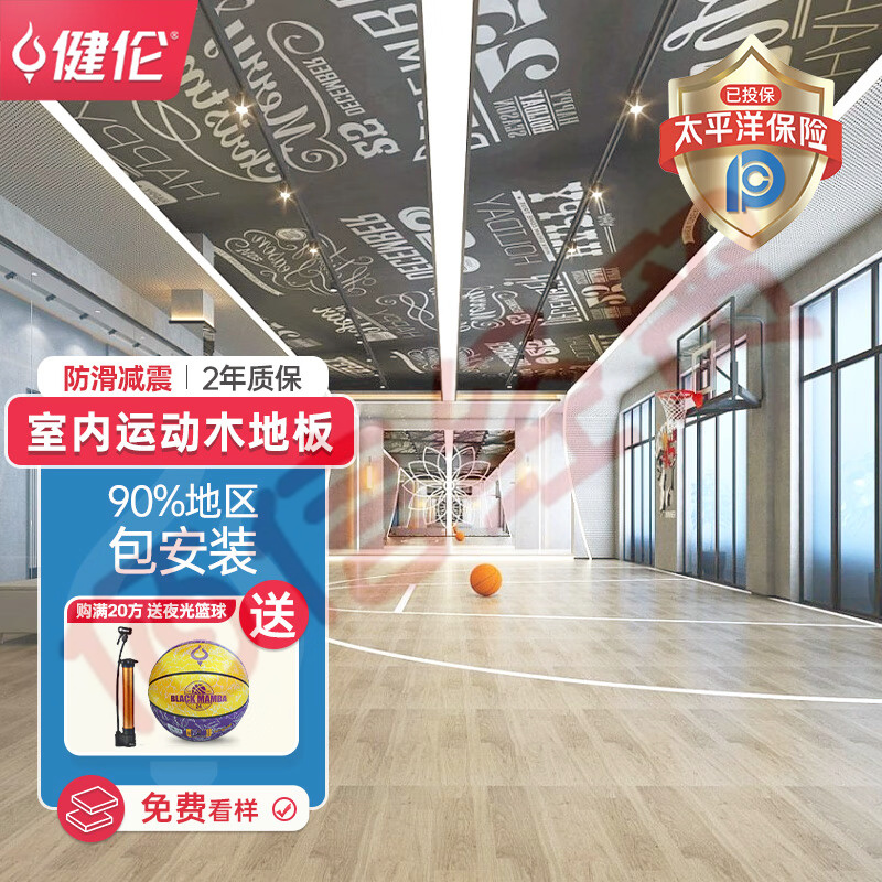 健倫單龍骨C級強化型體育運動場館訓練專業(yè)楓樺木運動木地板JLDB90C1 自營
