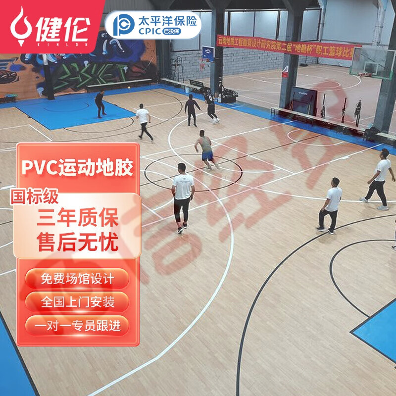 健倫(JEEANLEAN)室內(nèi)籃球場地膠高端場館專用防滑運動地板賽事訓(xùn)練通用PVC木紋8mm 自營