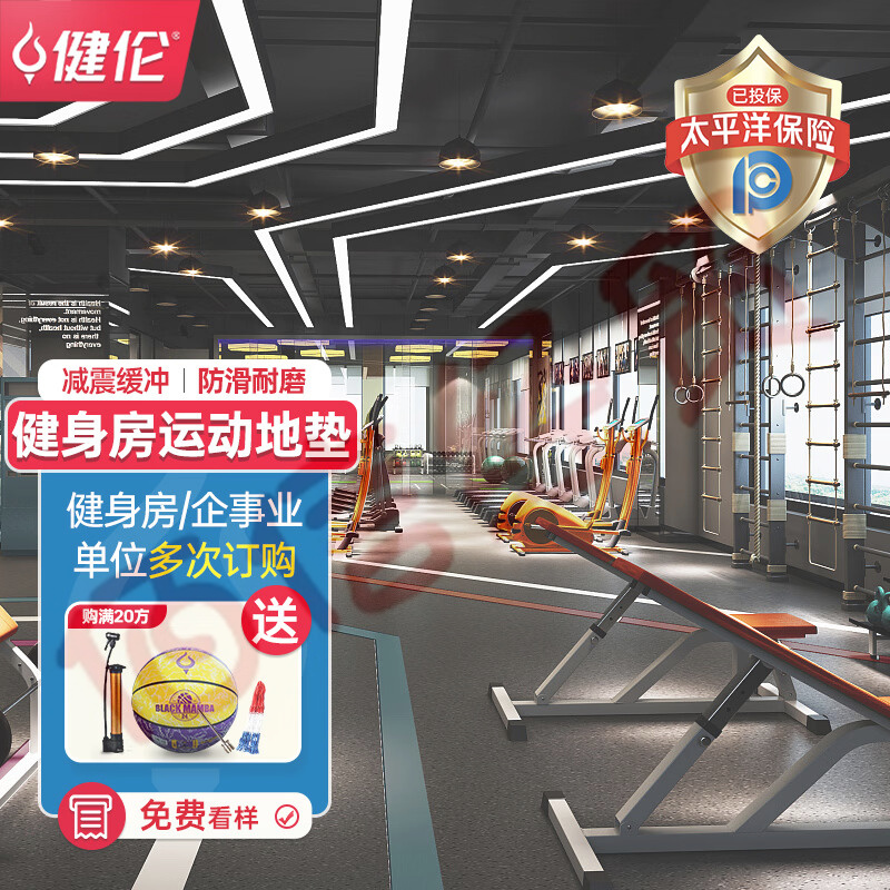 健倫健身房橡膠地墊 力量區(qū)防砸減震隔音地墊 平底款100*100*2.0CM 自營