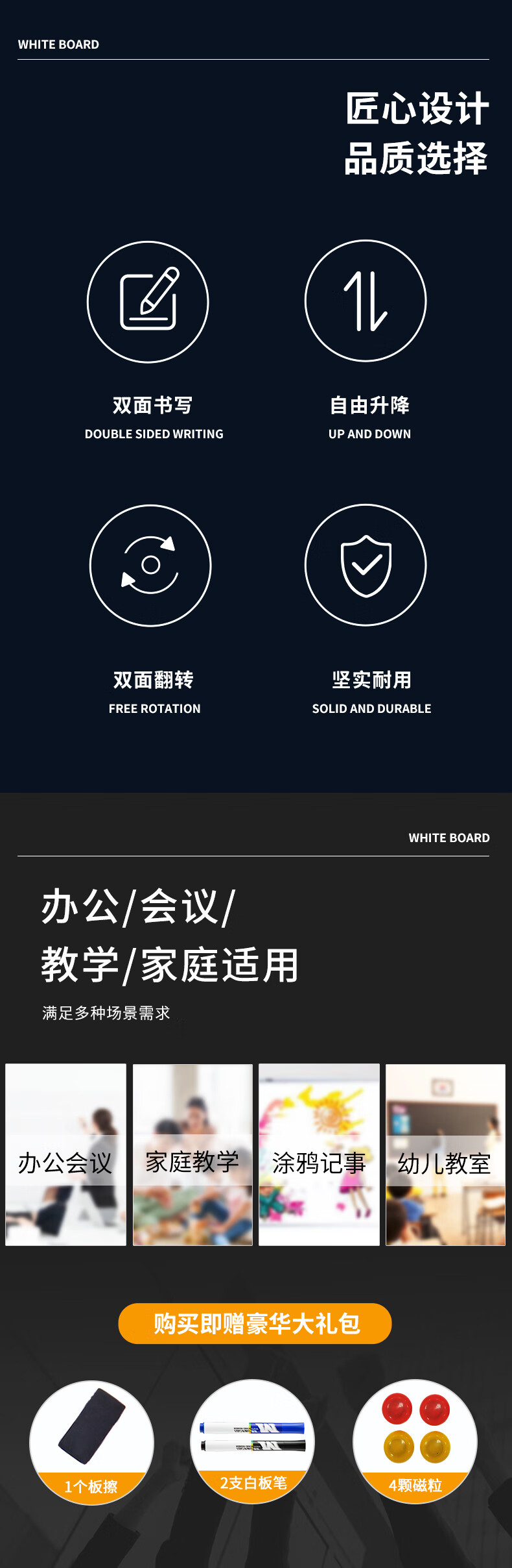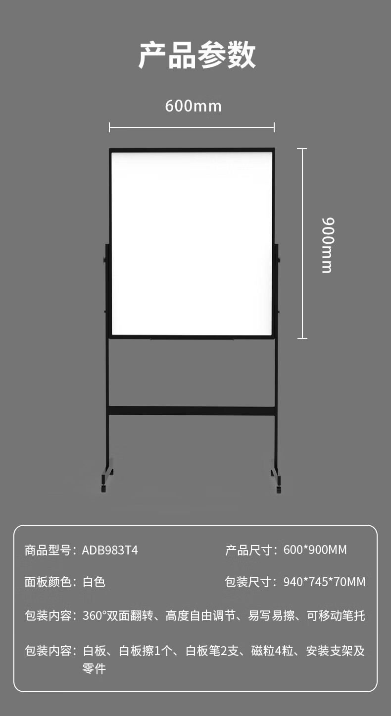 晨光(M&G) 60*90cmH型支架式白板 雙面翻轉(zhuǎn)書寫會(huì)議辦公教學(xué)家用可移動(dòng)升降磁性白板黑板寫字板ADB983T4 自營