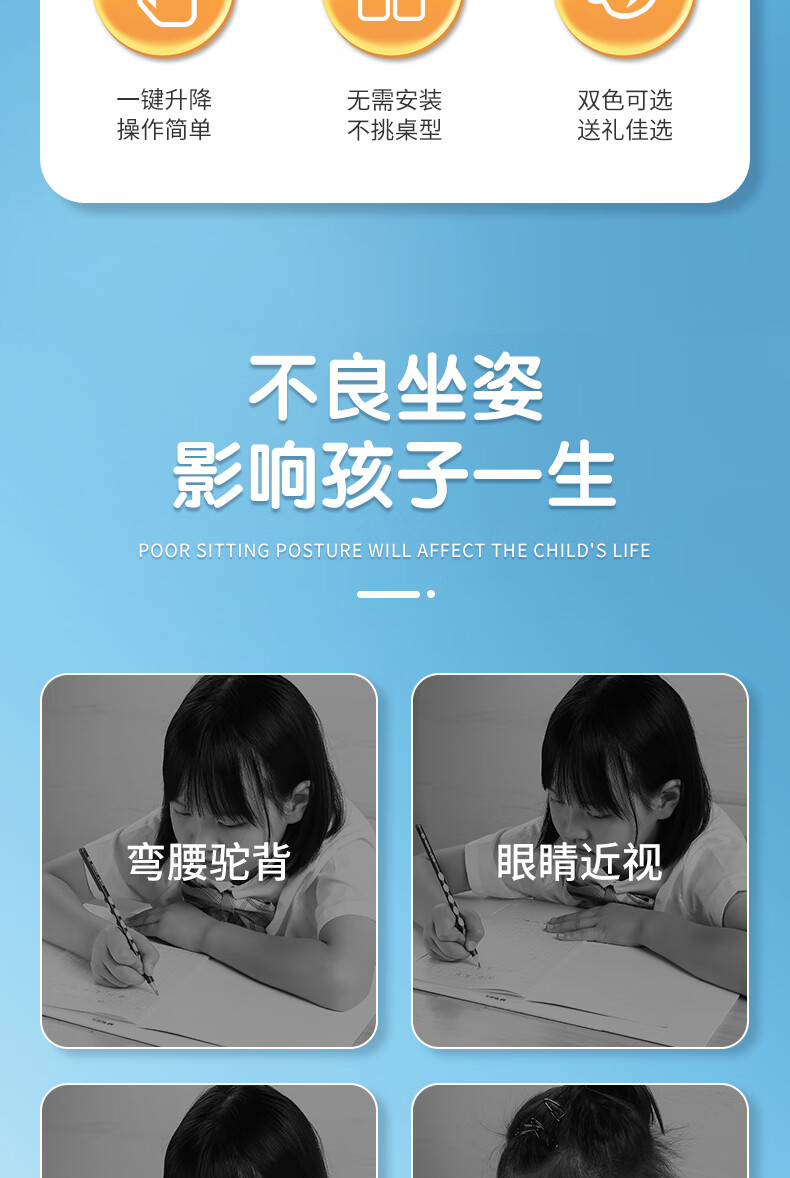 晨光(M&G)文具桌面款款坐姿矯正器+可折疊閱讀架組合裝 小學(xué)生用學(xué)習(xí)預(yù)防低頭寫作業(yè) 天空藍(lán) 自營