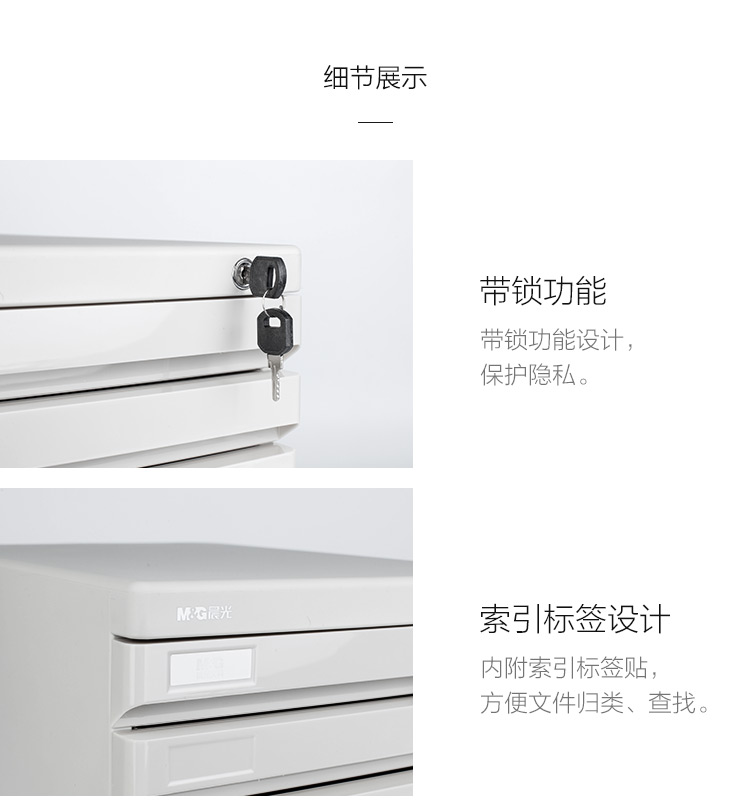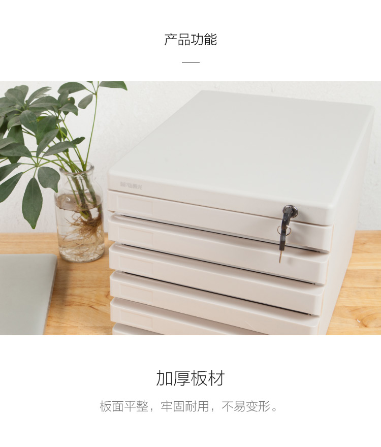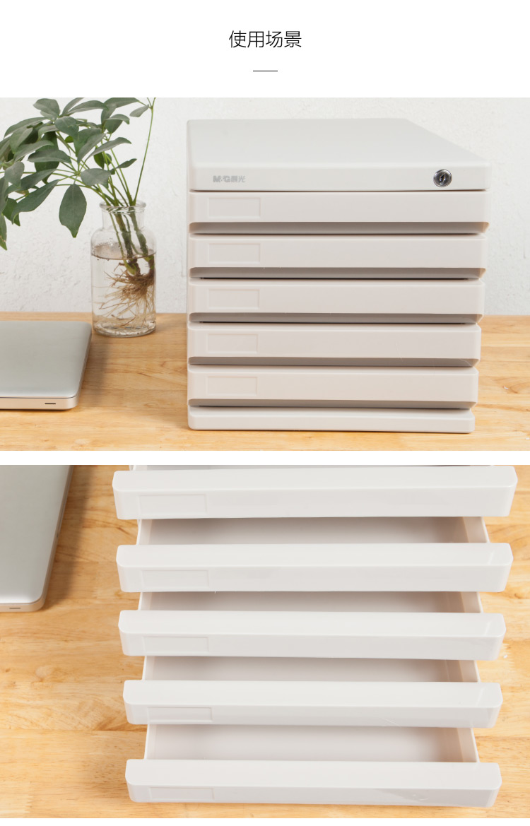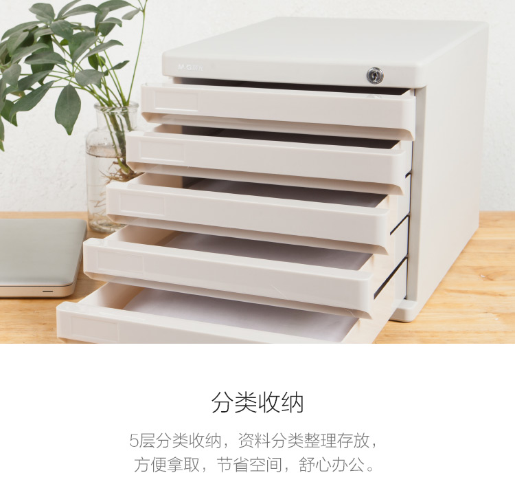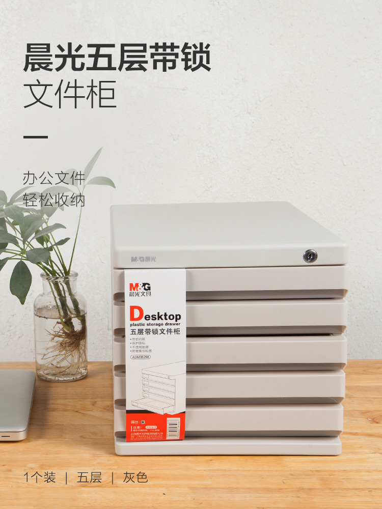 晨光(M&G)文具5層帶鎖桌面文件柜 抽屜式拉手A4資料收納柜 帶索引標簽 辦公用品 灰色、黑色單個裝ADM95298 自營