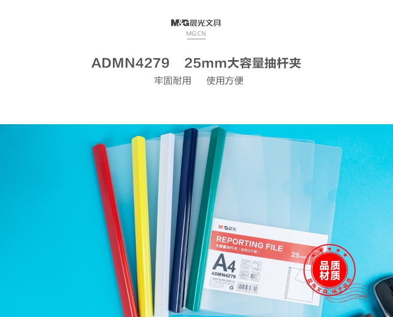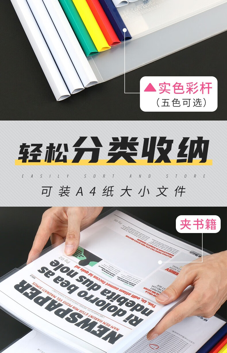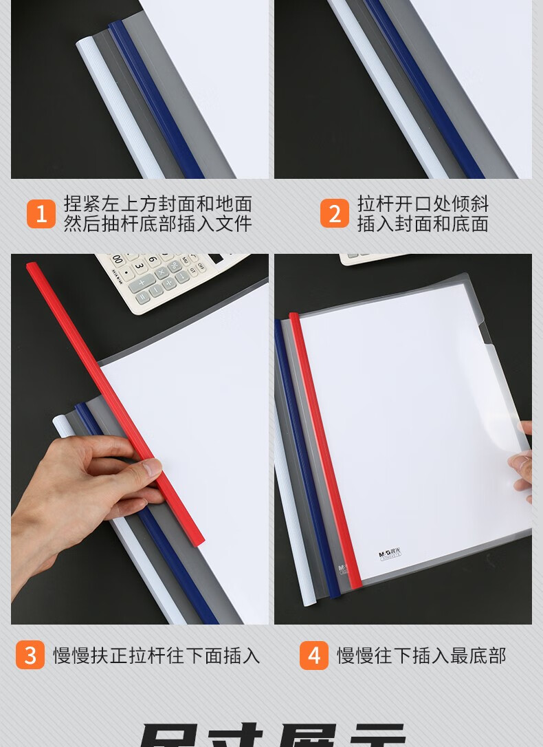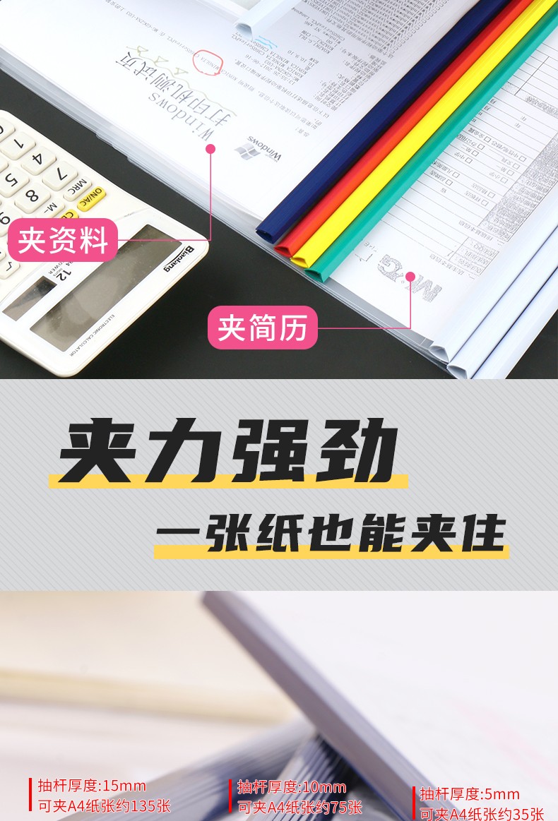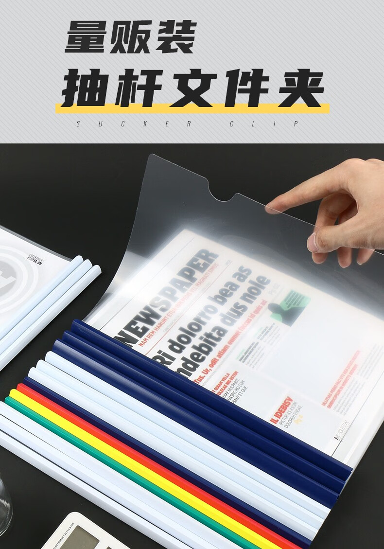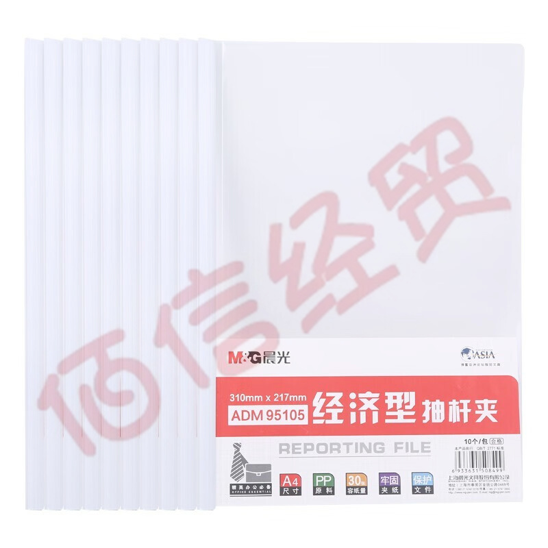 晨光(M&G) 文具文件拉桿夾透明插頁(yè)抽桿夾a4加厚資料夾書夾子大容量活頁(yè)夾 ADM95105-10個(gè)10mm純白-可夾約50張 自營(yíng)