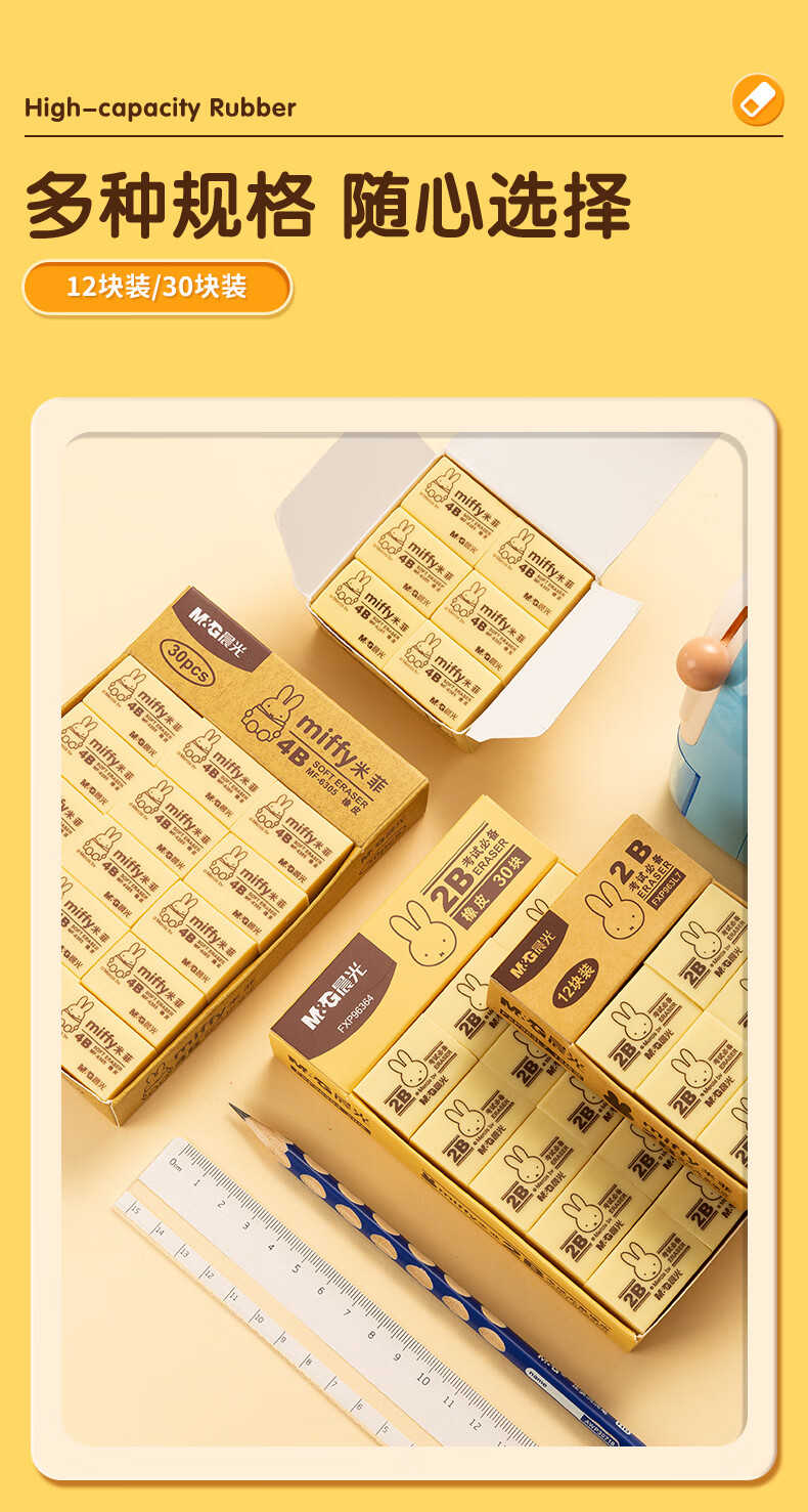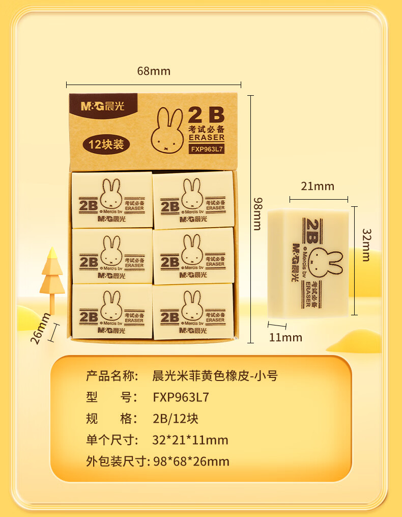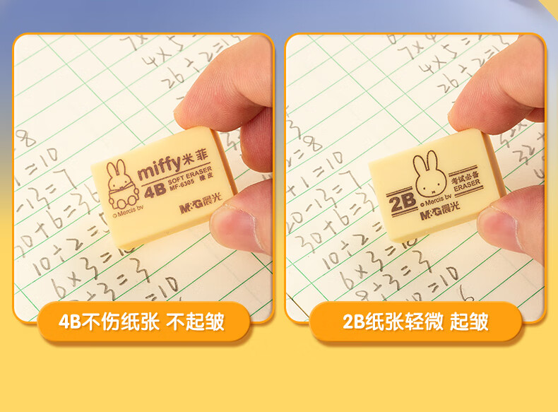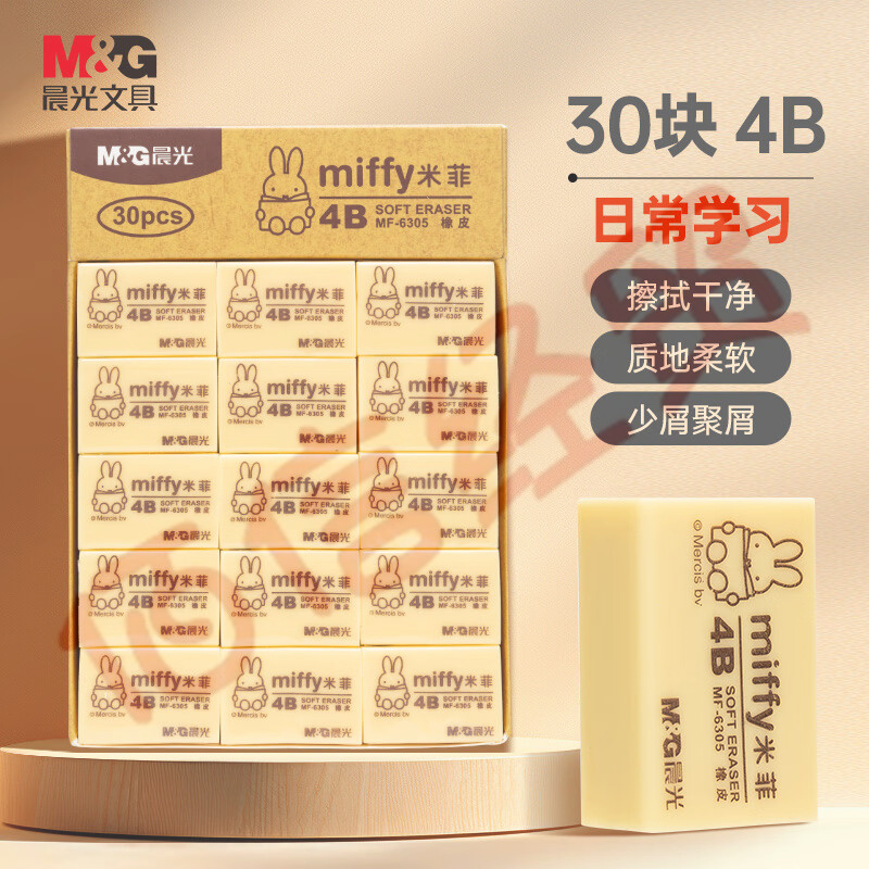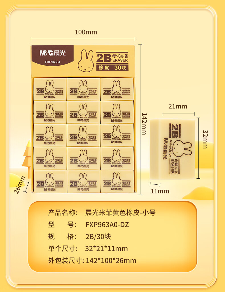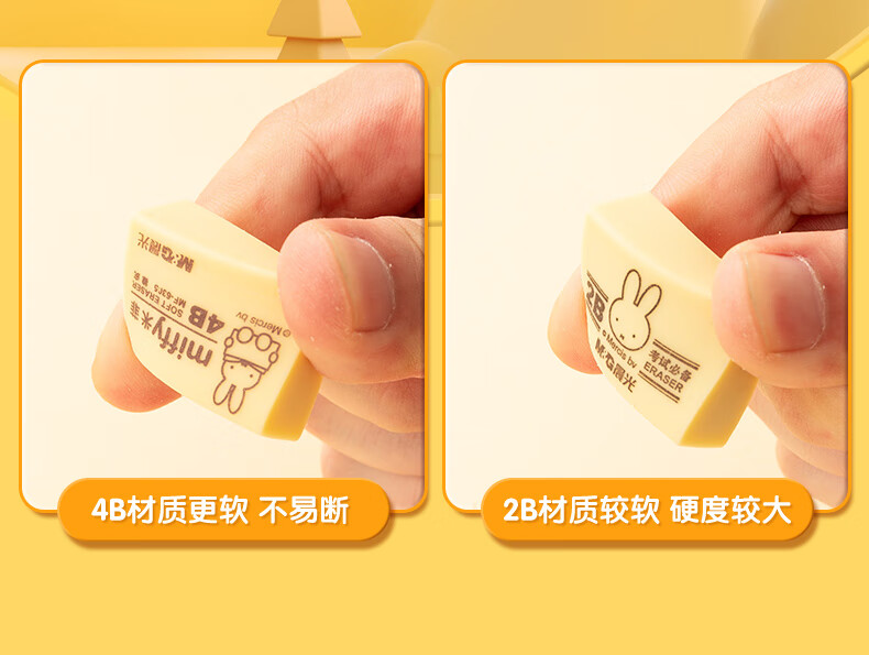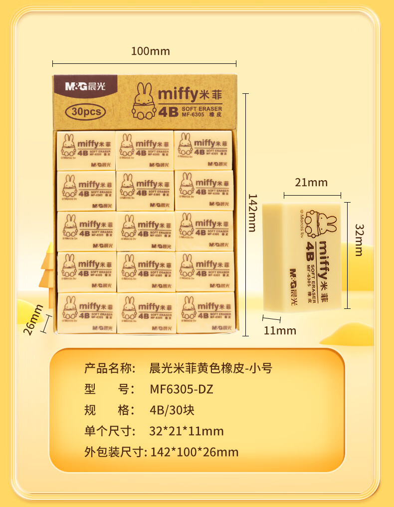 晨光(M&G)文具4B黃色小號橡皮 學生美術繪圖考試橡皮擦 米菲系列可愛橡皮擦 30塊/盒MF6305 自營