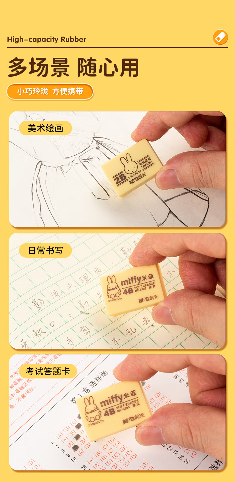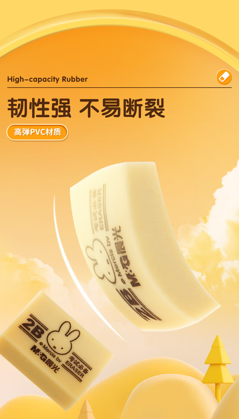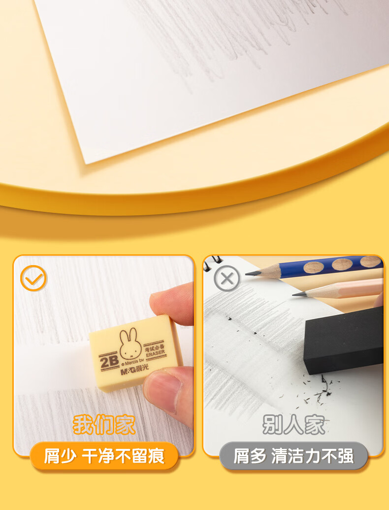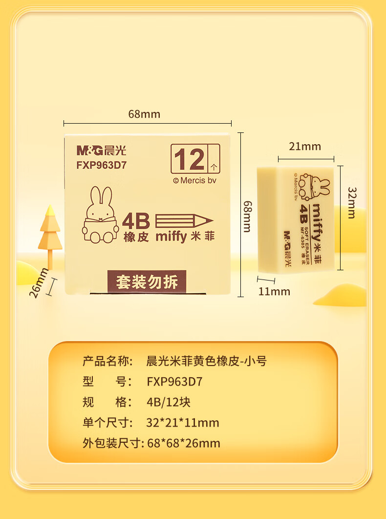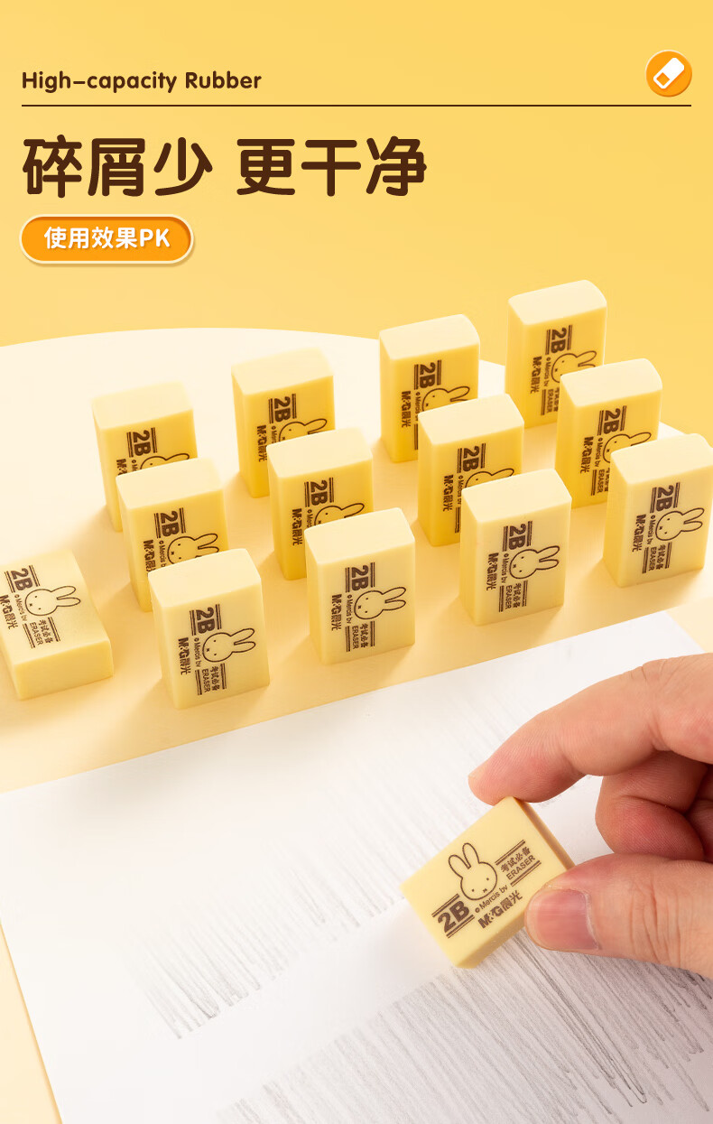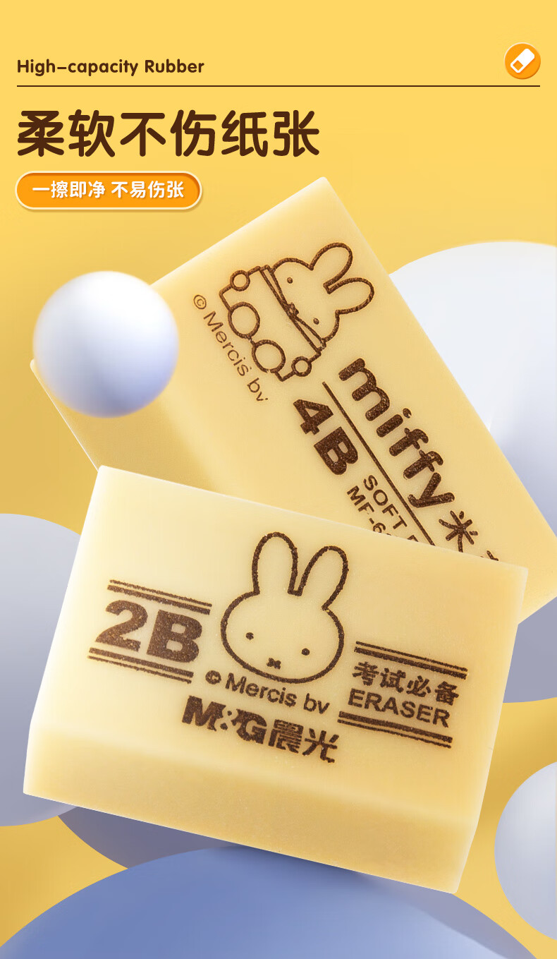 晨光(M&G)文具4B黃色小號橡皮 學生美術繪圖考試橡皮擦 米菲系列可愛橡皮擦 30塊/盒MF6305 自營