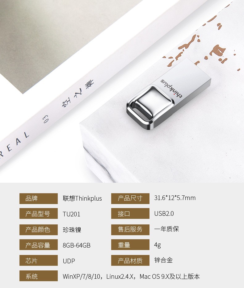 聯(lián)想(thinkplus)Type-C USB雙接口U盤銀色高速金屬移動優(yōu)盤OTG辦公電腦系統(tǒng)車載多 TPCU301【Type-c手機U盤】32G 自營