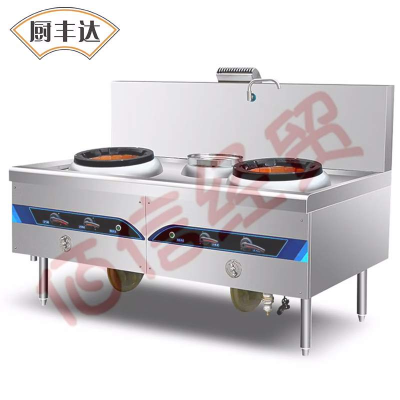廚豐達 廣式燃氣灶商用 液化氣天然氣猛火灶學校酒店廚房工地食堂熄火保護 雙炒一溫灶-2.2米(一價全包) 自營
