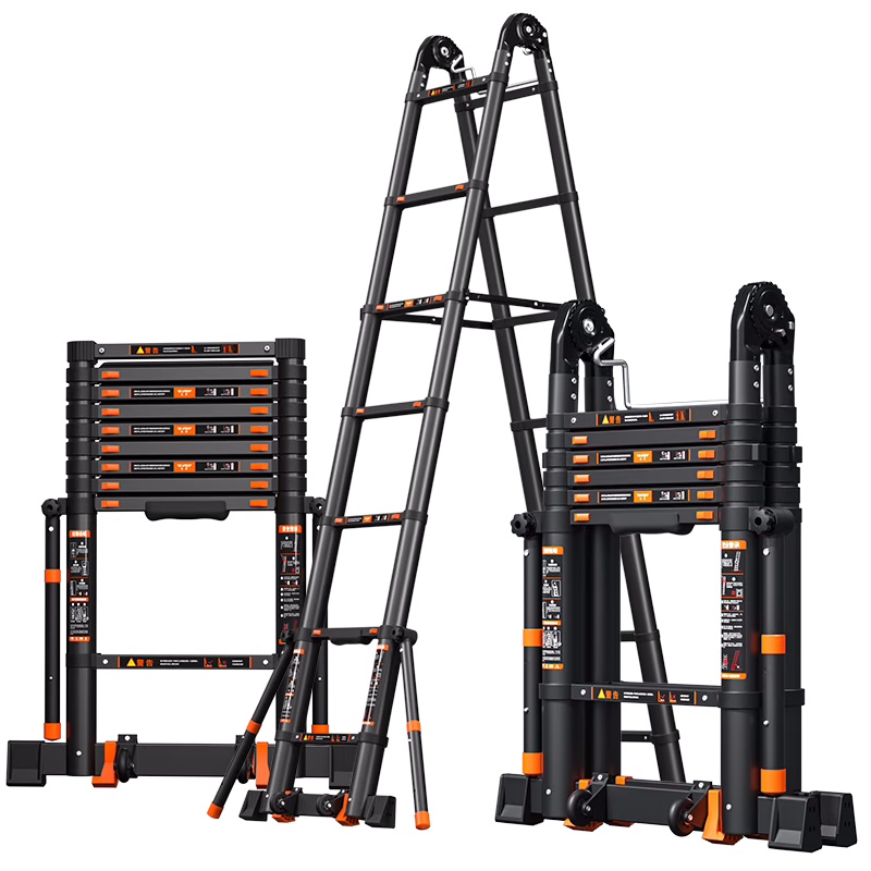巴芬 德國品牌伸縮梯子家用折疊人字梯加厚多功能鋁合金工程升降樓梯 六腳多功能2.5米直梯5.0米 自營