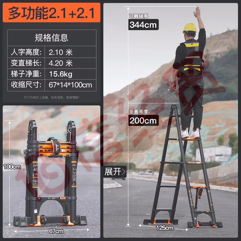 巴芬伸縮梯多功能梯子家用梯人字梯加厚鋁合金工程梯升降直梯折疊樓梯 多功能2.1米【拱橋防晃+防滑】 自營