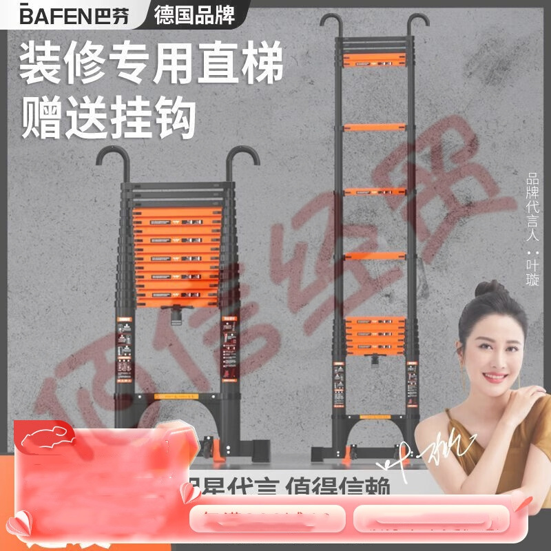 巴芬伸縮梯多功能梯子家用梯人字梯加厚鋁合金工程梯升降直梯折疊樓梯 單面直梯6.3米【靠墻使用】 自營