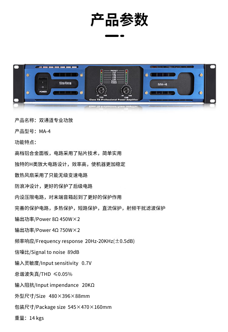 King-Bang京邦MA-4雙通道專業(yè)功放 自營