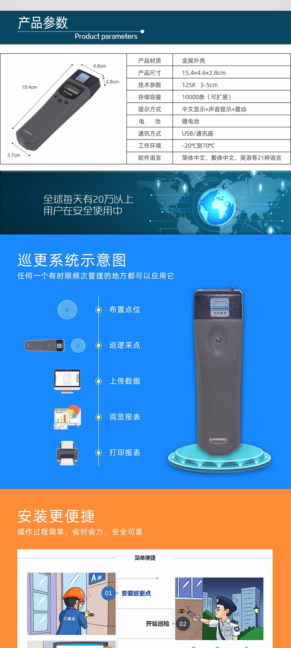 蘭德華(LANDWELL)Landwell蘭德華智能電子巡更系統(tǒng)L-3000EF系列自動感應(yīng)式巡更棒通訊座 自營