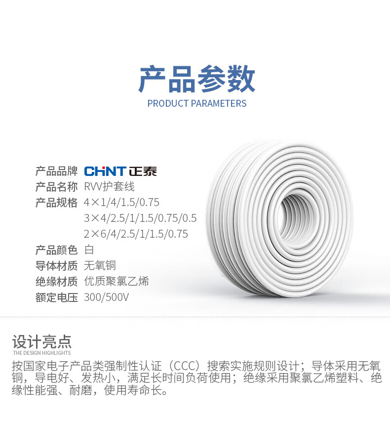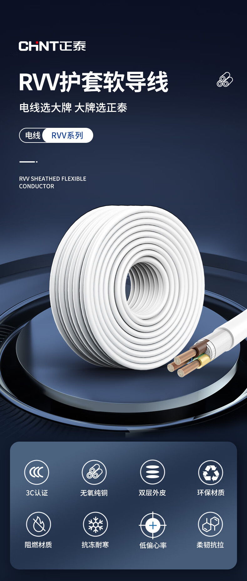 正泰(CHNT)電線電纜RVV二芯三芯軟護(hù)套線電源線銅芯國(guó)標(biāo)銅線黑色(三芯四平方)100米 自營(yíng)