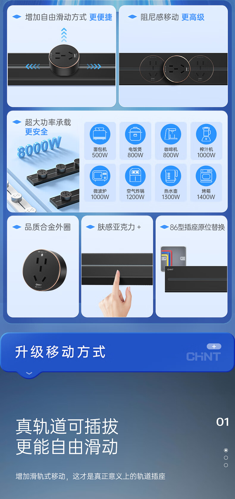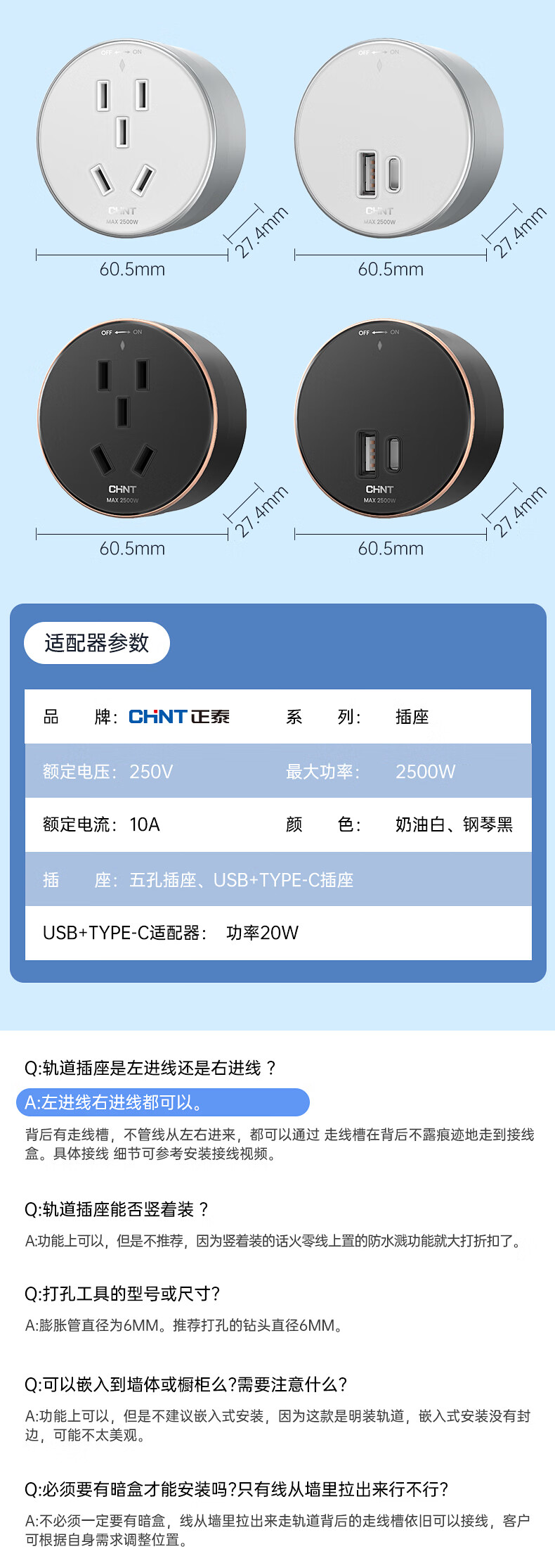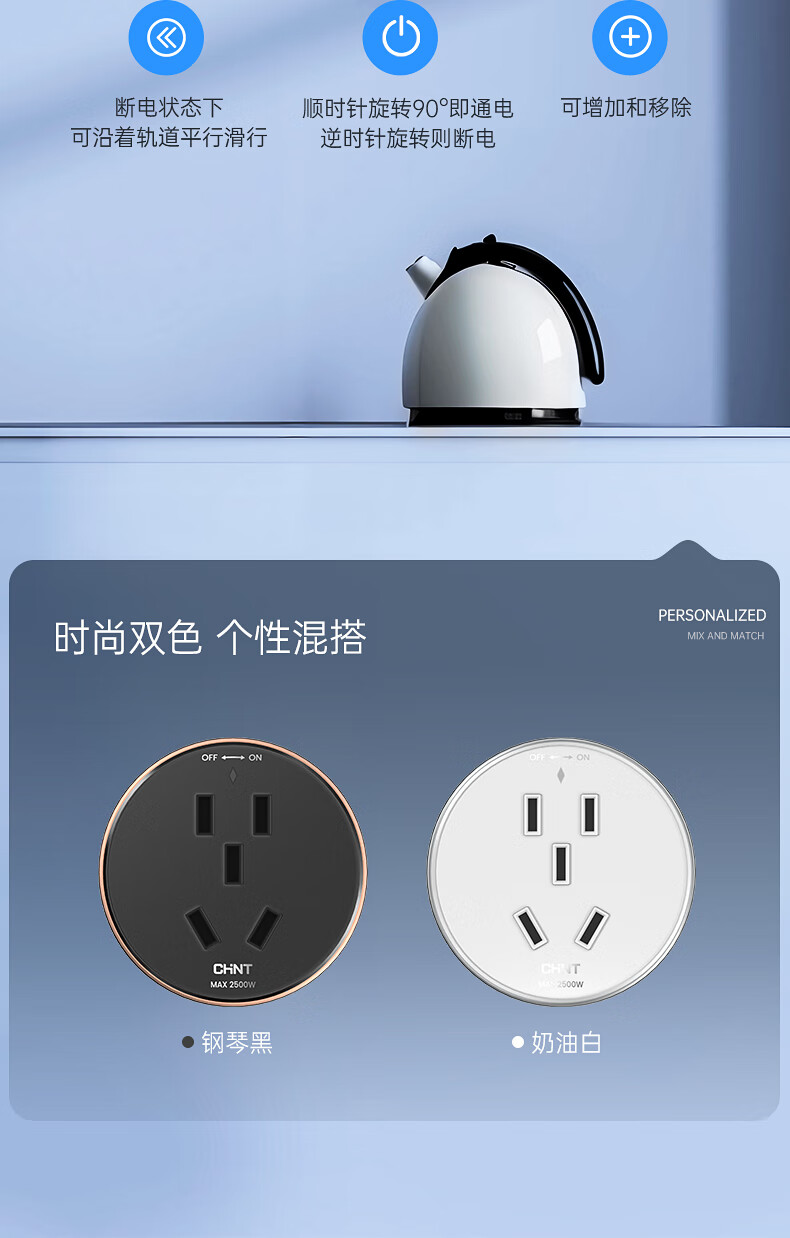 正泰明裝軌道插座免打孔可移動(dòng)墻壁插座壁掛式100cm+5個(gè)五孔奶油白(其它型號(hào)咨詢客服) 自營(yíng)