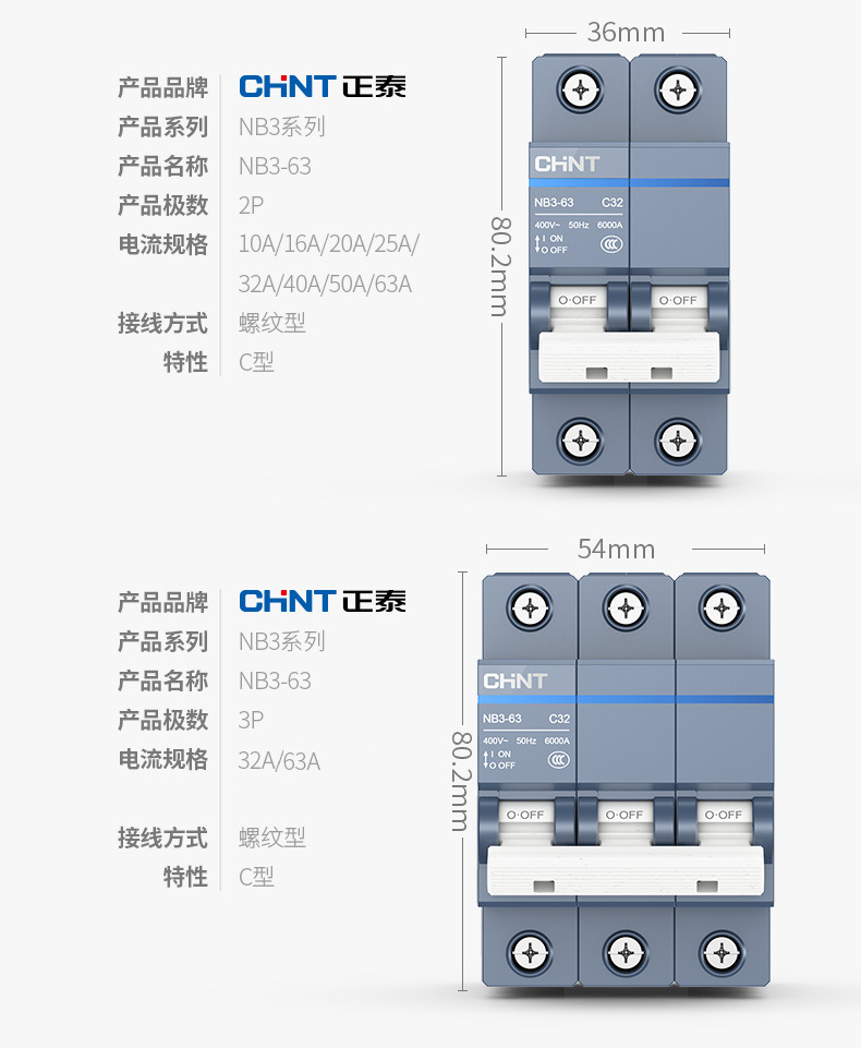 正泰(CHNT)漏電保護開關(guān)斷路器NB3LE-1254PC63(其它型號咨詢客服) 自營