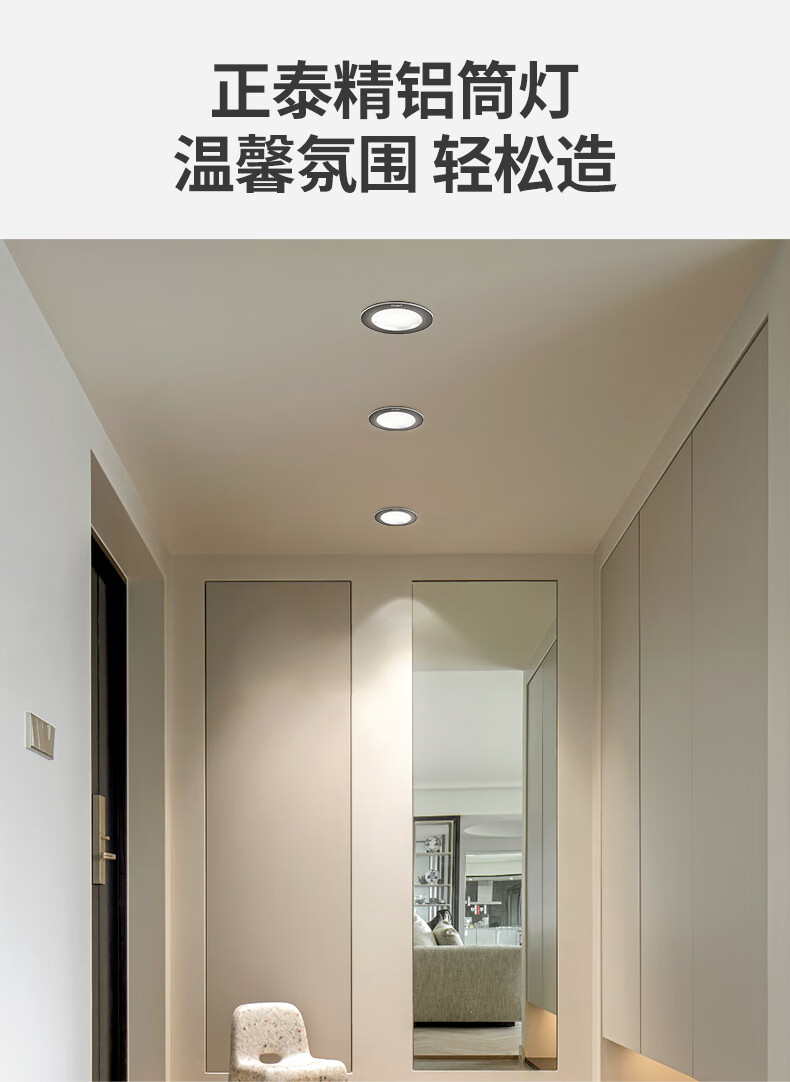 正泰(CHNT)LED筒燈客廳嵌入式天花燈鋁材銀邊白10只裝4W三色光開孔7.5-8.5cm 自營