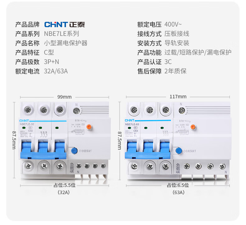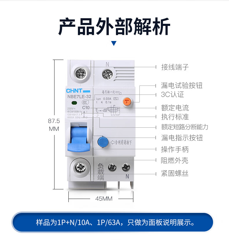 正泰(CHNT)空氣開關(guān)漏電保護(hù)開關(guān)斷路器空開小型家用NBE7LE2P10A 自營(yíng)