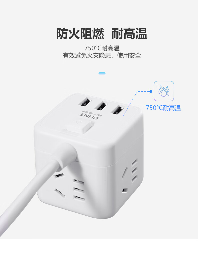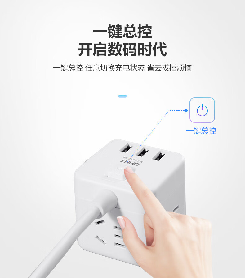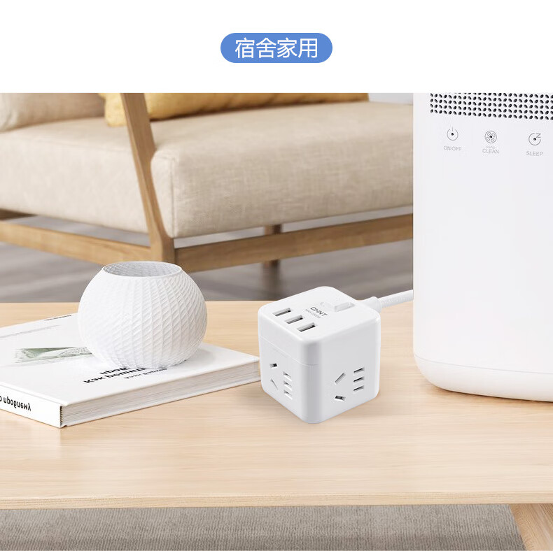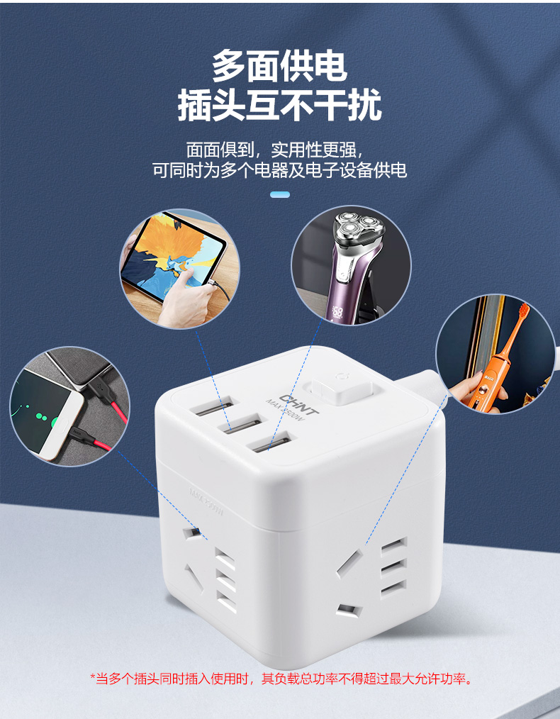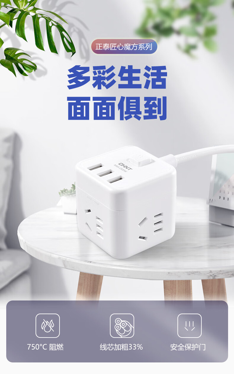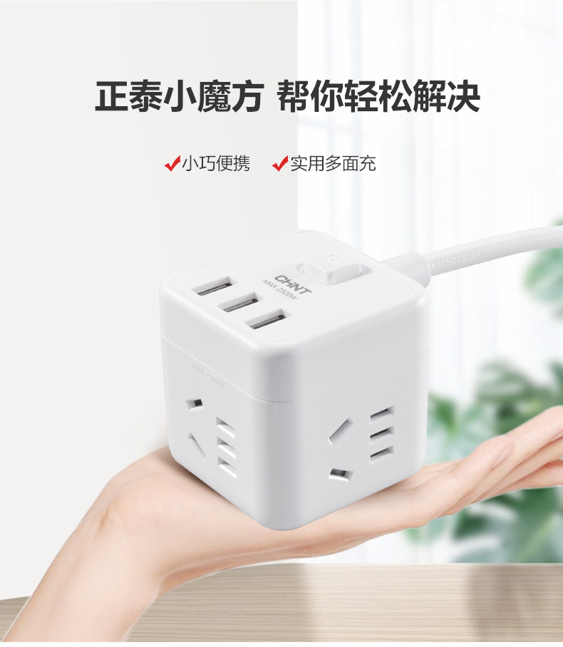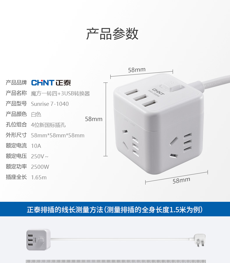 正泰方插插座USB創(chuàng)意充電家用多功能排插轉(zhuǎn)換無線插線板Sunrise7-1040U有線方插一轉(zhuǎn)四-白色+3USB 自營