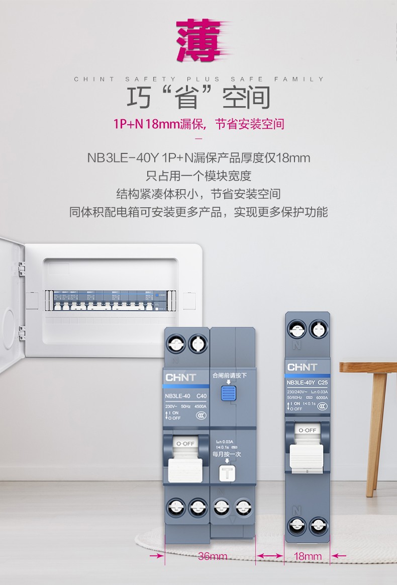 正泰(CHNT)空氣開關(guān)漏電保護(hù)開關(guān)斷路器空開小型家用NB3LE-401P+NC40 自營