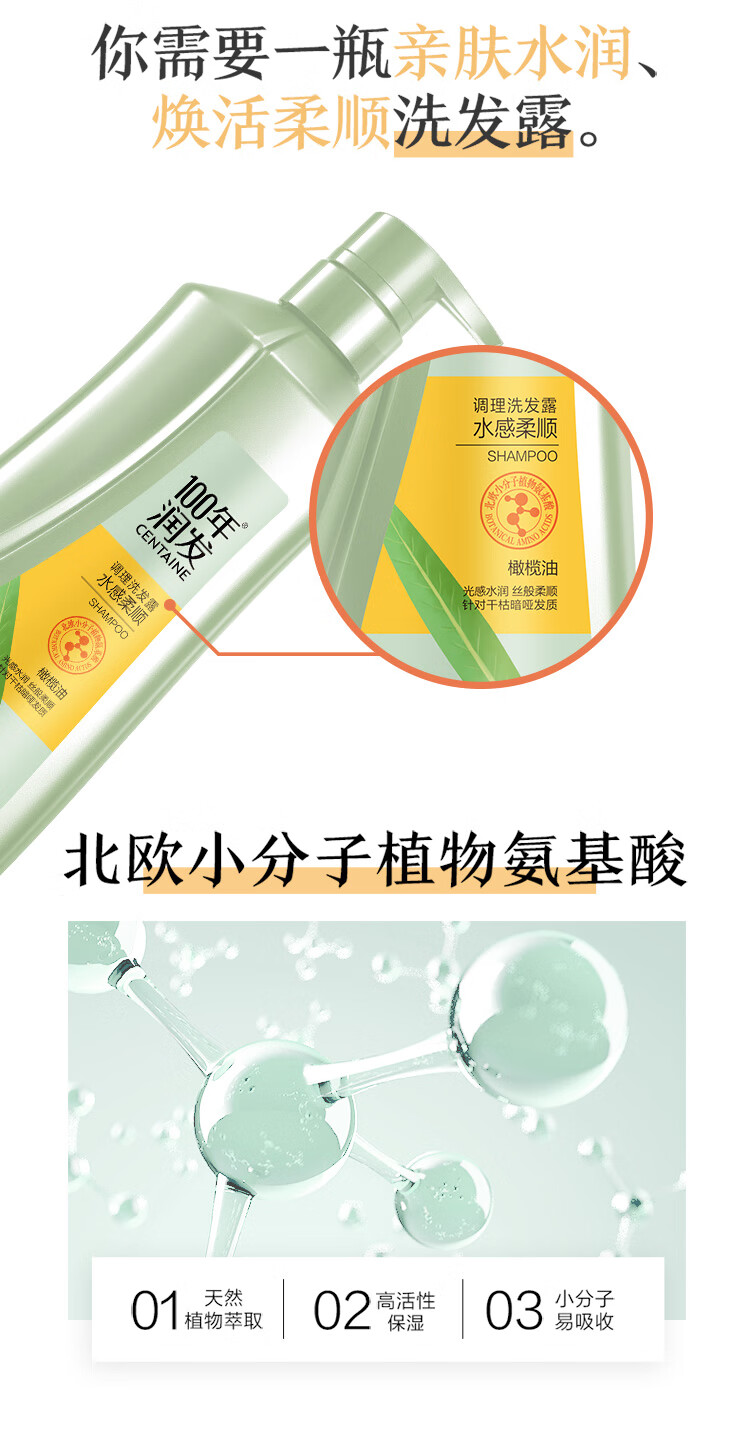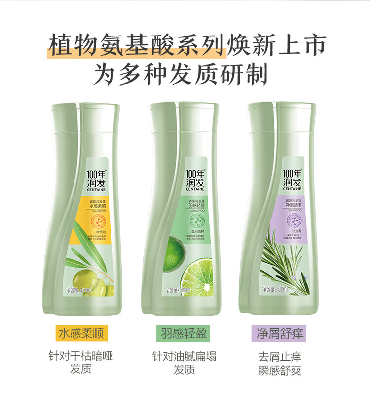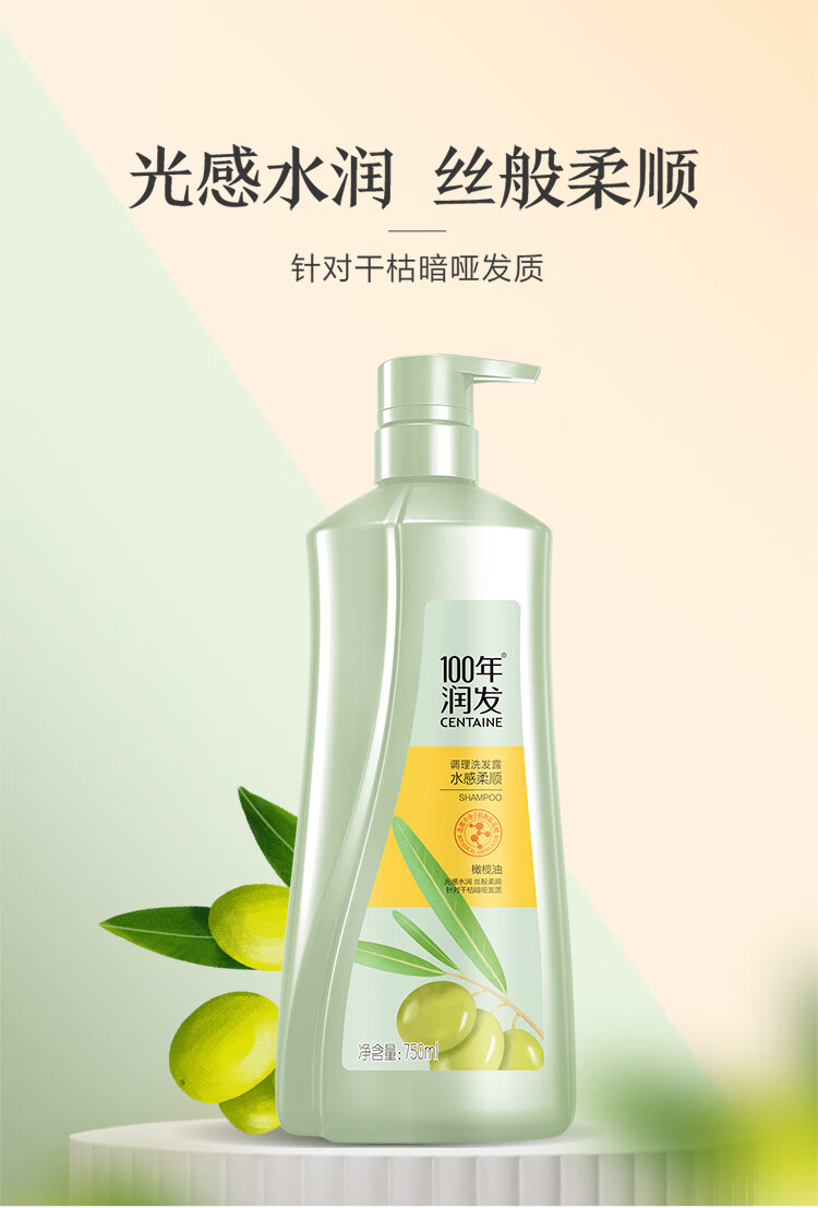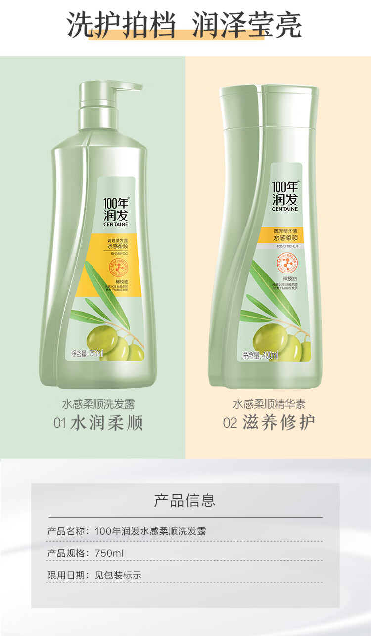 100年潤發(fā)洗發(fā)水(水感柔順、羽感輕盈)調(diào)理氨基酸男女士洗發(fā)露液頭水膏百年潤發(fā)750ML(一箱8瓶,整箱售) 自營