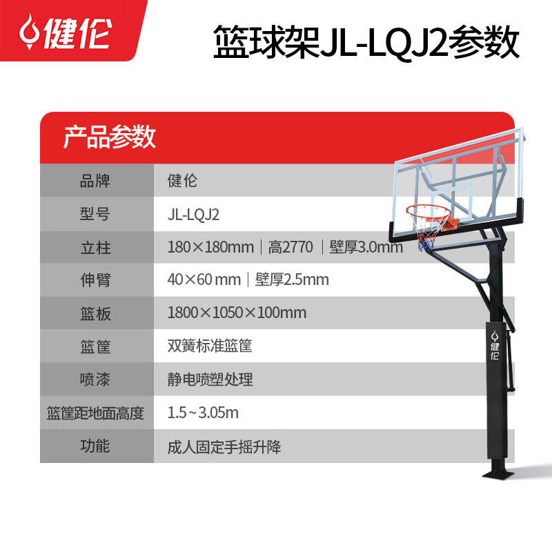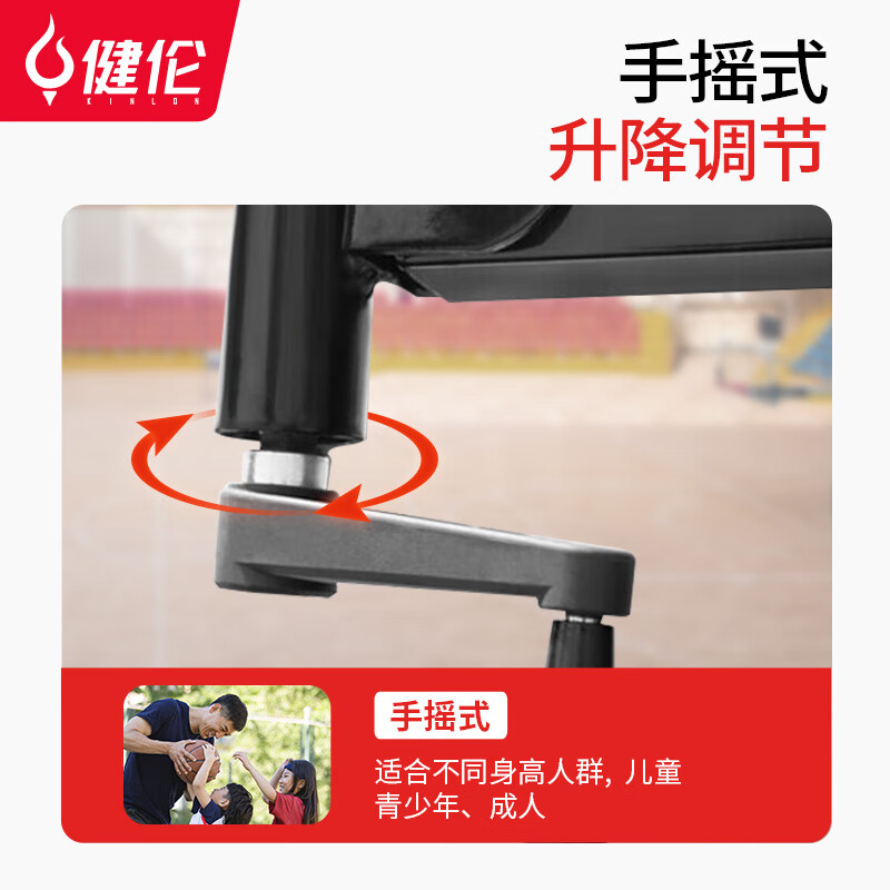 健倫籃球架成人固定手搖升降地理180籃球架 自營
