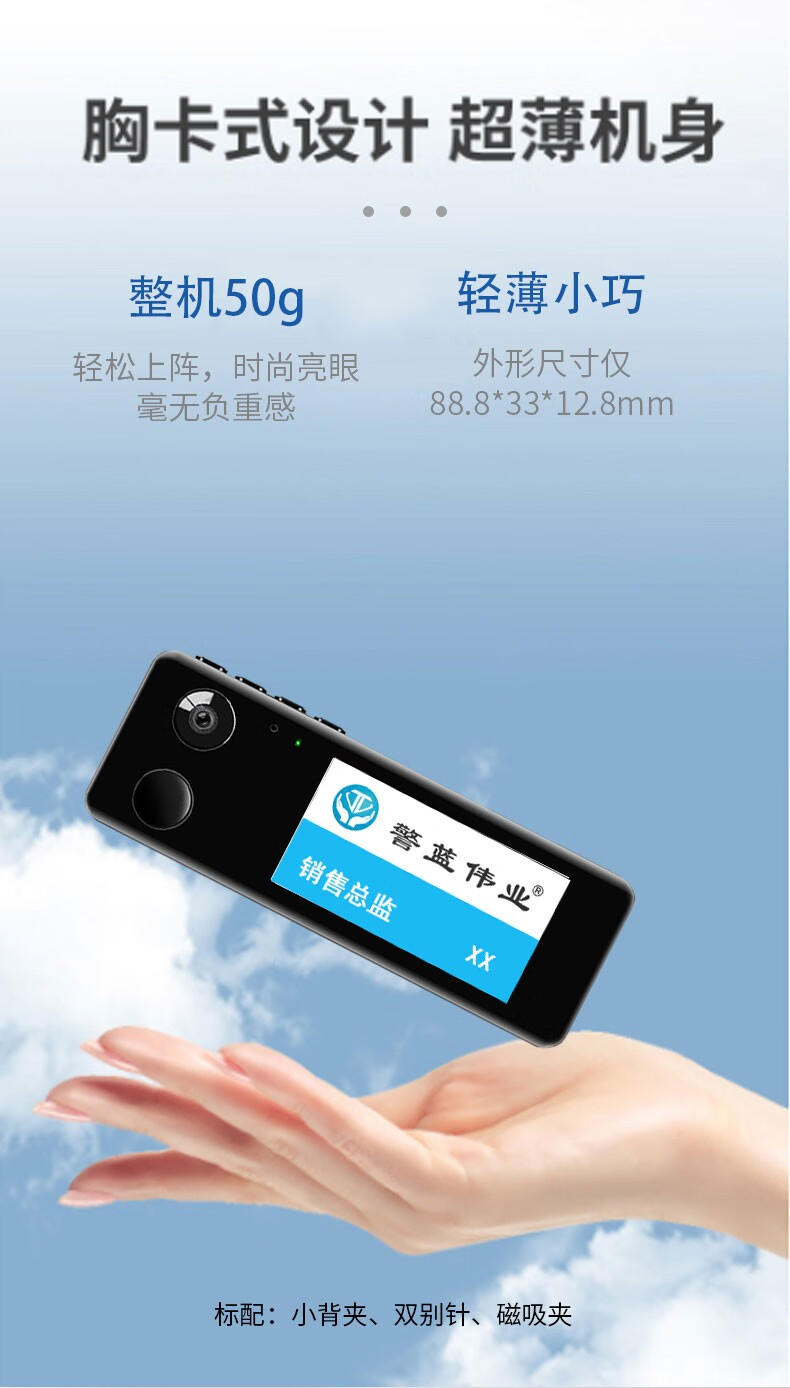 警藍偉業(yè)DSJ-X1CHD胸牌式工作記錄儀胸前佩戴電子工牌可定制256G 自營