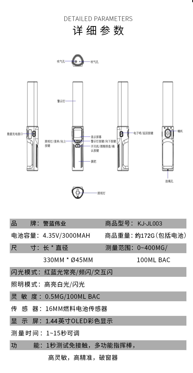 警藍(lán)偉業(yè)警藍(lán)偉業(yè)KJ-JL002吹氣式檢測儀語音測酒儀高精度 自營
