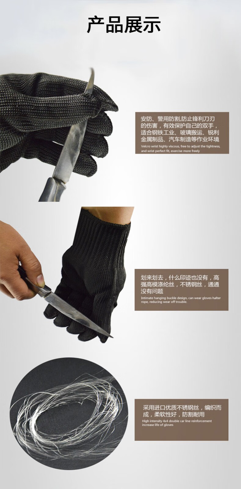 警藍(lán)偉業(yè)防割手套JL-FG01抗劃傷保安器材戶外逃生鋼絲防護(hù)防玻璃耐刀切割黑色 自營(yíng)