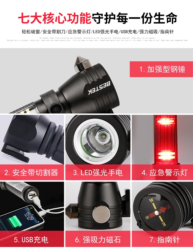 警藍(lán)偉業(yè)多功能車(chē)載安全錘救生錘強(qiáng)光手電筒汽車(chē)用消防逃生錘破窗器. 自營(yíng)