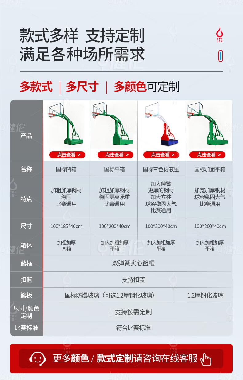 健倫健倫比賽訓(xùn)練專用加厚加粗立柱升級(jí)款平箱籃球架/只