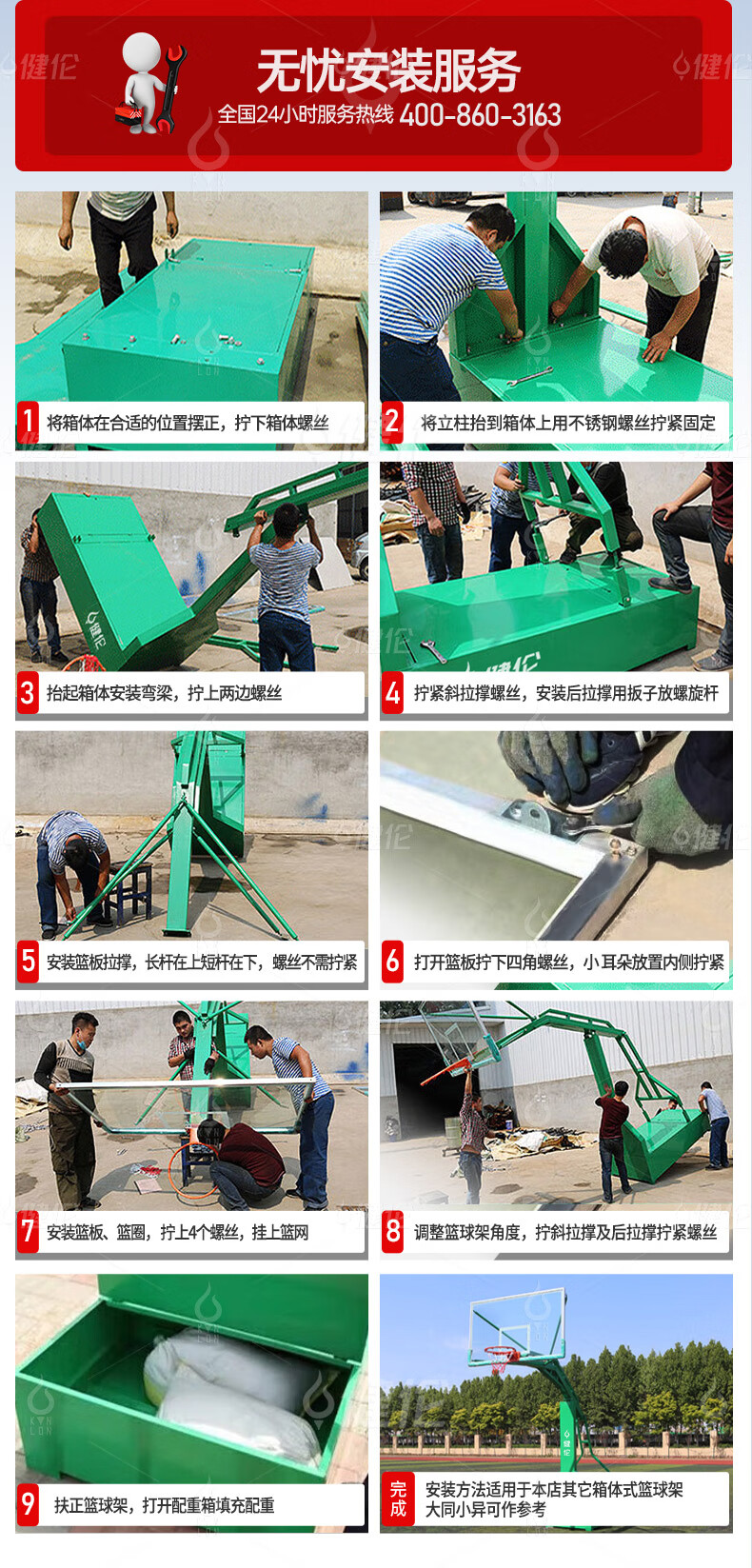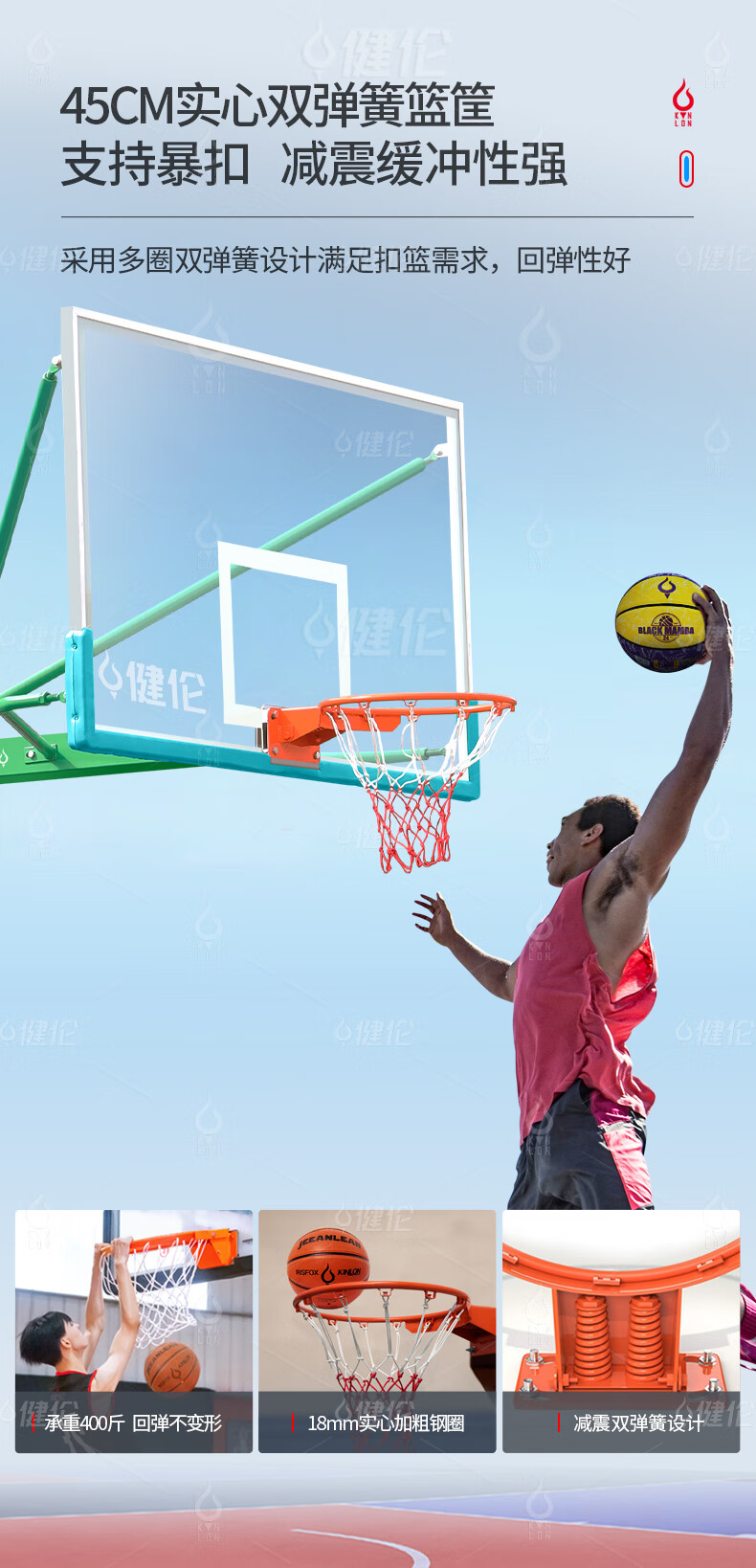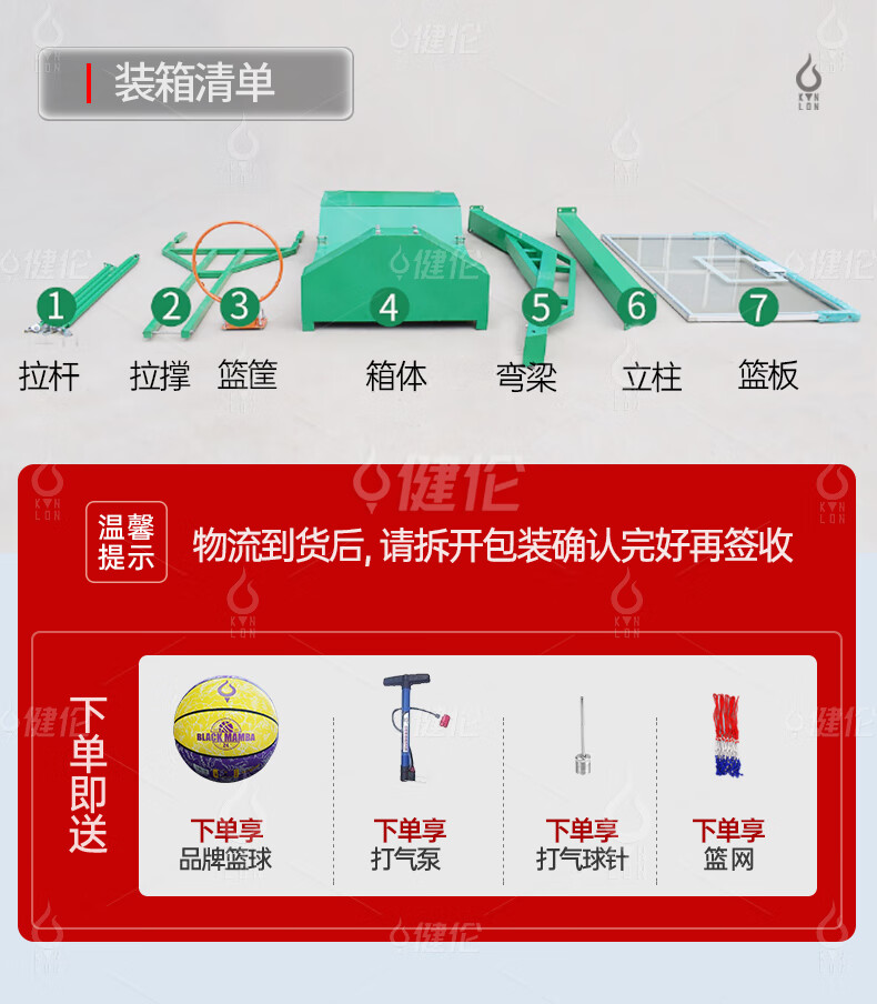 健倫加厚移動(dòng)籃球架成人標(biāo)準(zhǔn)戶外籃球架免費(fèi)安裝