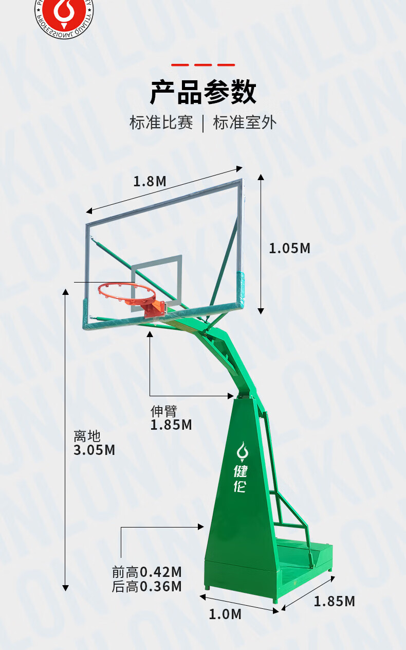 健倫(JEEANLEAN)JLGAA61 籃球架 成人訓(xùn)練比賽標(biāo)準(zhǔn)電動液壓籃球架(含防撞包)