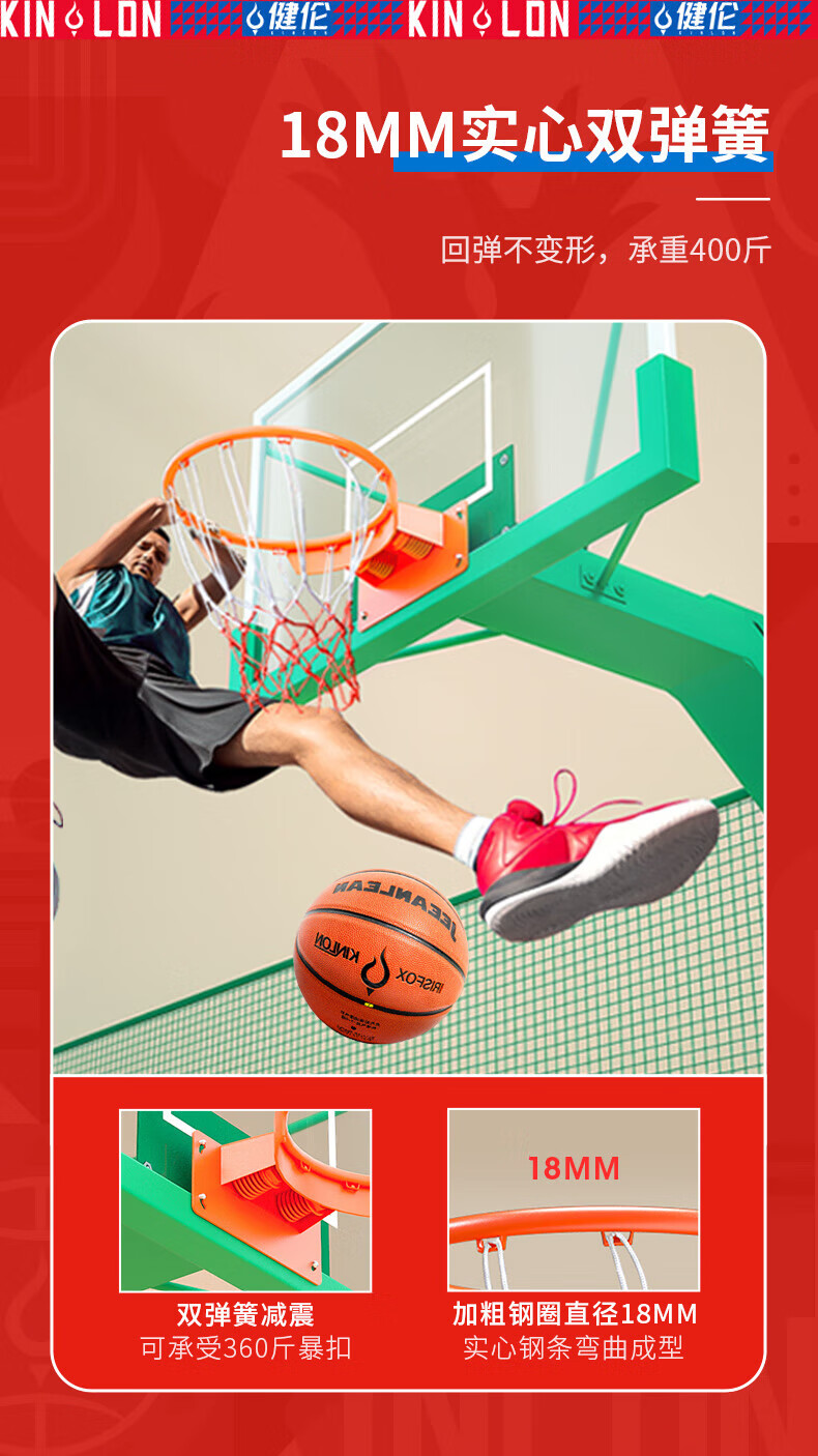 健倫成人平箱籃球架加大加厚箱體戶外標(biāo)準(zhǔn)籃球框移動三色1支免費安裝