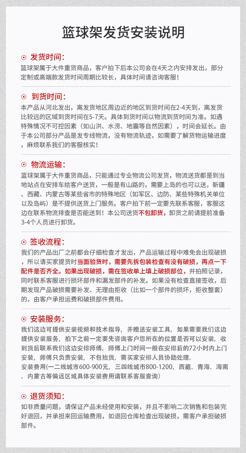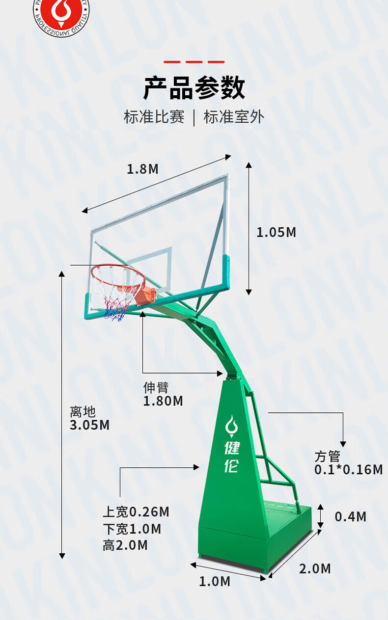 健倫健倫比賽訓練專用加厚加粗立柱升級款平箱籃球架/只