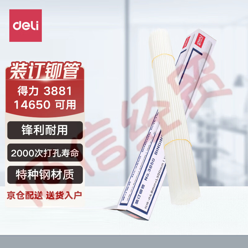 得力(deli)3850財務裝訂機專用透明裝訂鉚管Φ4.8*300mm(100根/盒) 自營