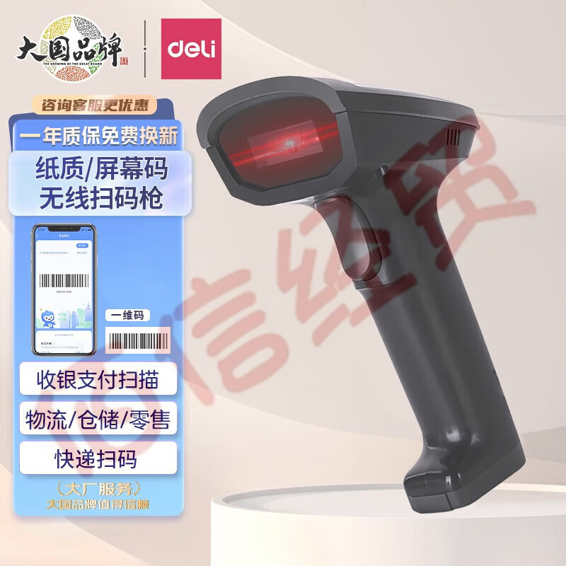 得力(deli)條碼掃描槍掃碼槍商品條碼槍餐飲零售商超倉儲(chǔ)物流手機(jī)屏幕支付商品掃描器14882W無線一維屏幕碼 自營