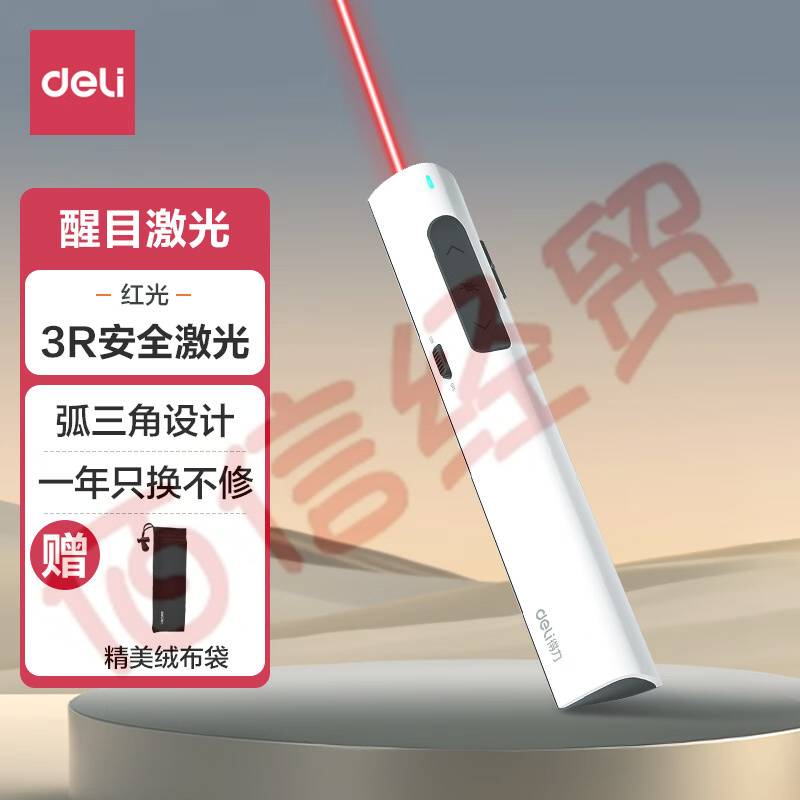 得力(deli)激光筆可充電雙尾插接口教鞭ppt翻頁幻燈片遙控激光翻頁筆演講筆無線演示器紅光(白、黑兩色)2801 自營