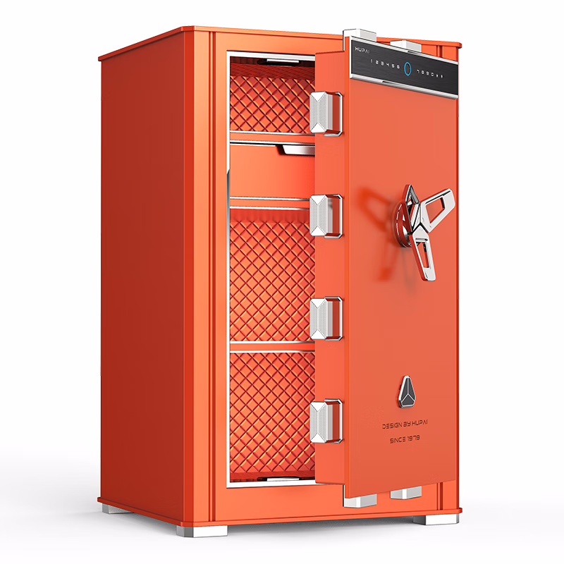 虎牌保險(xiǎn)柜家用辦公大型指紋密碼國(guó)標(biāo)認(rèn)證豪華高端防盜柜收納皮革抽屜柜 85cm 天穹系列 霞光橙 自營(yíng)