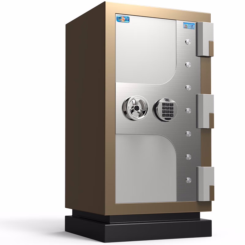 虎牌保險柜家用辦公小型國標認證保險箱150cm雙門指紋密碼全鋼防盜財務專用保密柜 尊虎系列 咖啡金