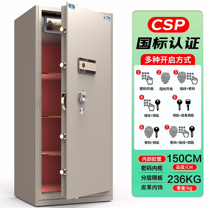 虎牌保險柜家用小型國標認證指紋密碼辦公保險箱加厚全鋼防盜財務專用夾萬保密柜 靈耀系列 150cm 自營