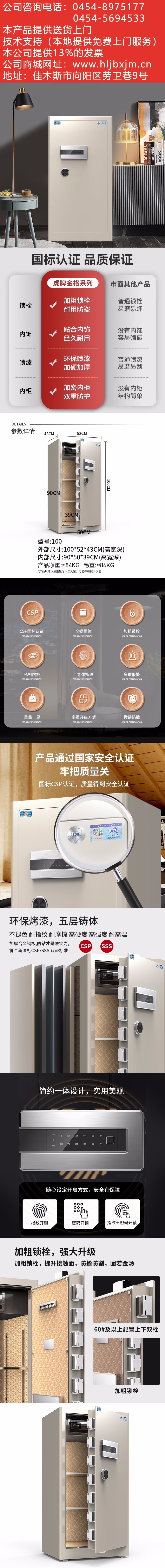 虎牌保險柜家用辦公小型國標認證保險箱100cm指紋密碼全鋼防盜財務(wù)專用保密柜 金格系列 象牙白 自營