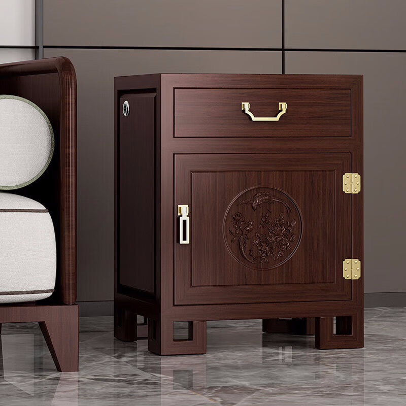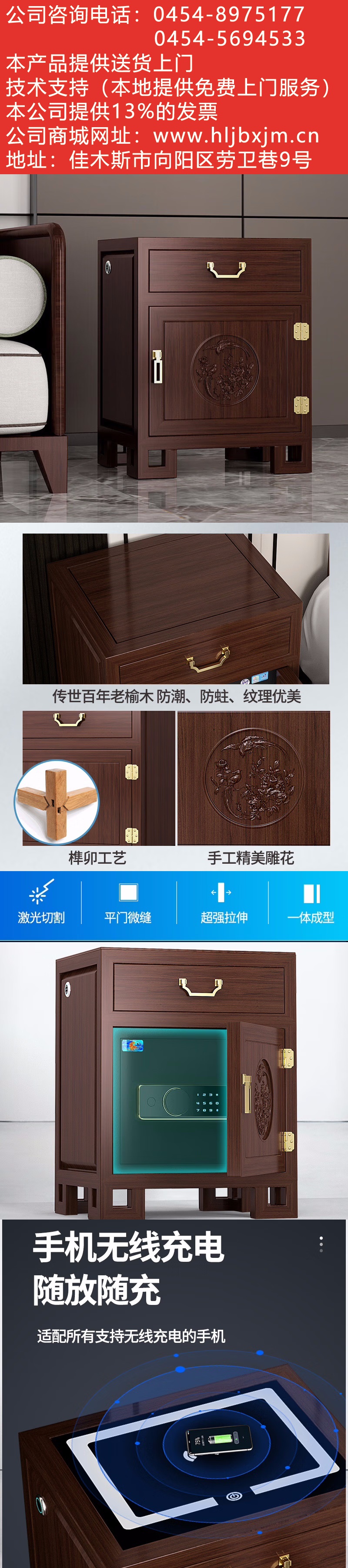 虎牌保險柜家用智能床頭柜指紋密碼柜無線充電保險箱防盜隱形抽屜式實木夾萬保險柜 63CM 自營