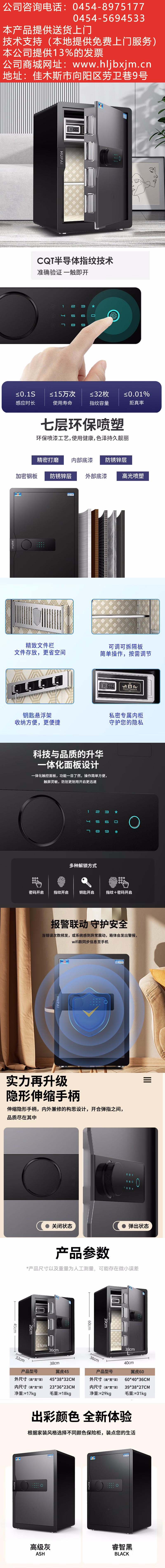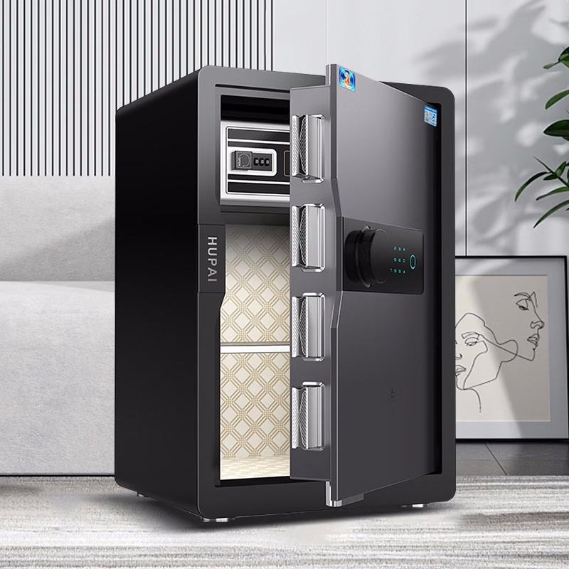 虎牌保險柜家用小型指紋密碼保險箱全鋼防盜可入墻辦公床頭保管柜升級版 翼虎系列 高級灰 60cm 自營