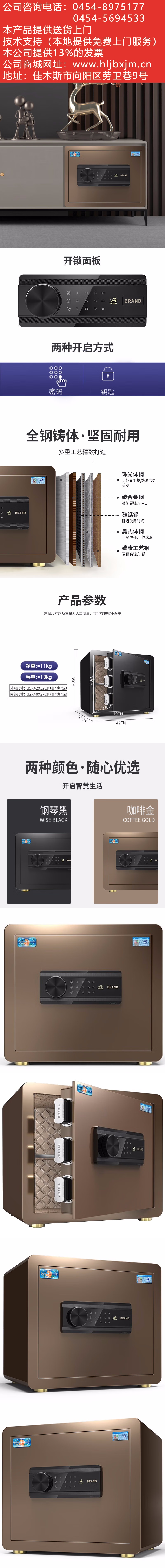虎牌保險(xiǎn)柜家用辦公小型電子密碼免鑰匙保管柜全鋼防盜床頭保險(xiǎn)箱可入墻入柜 博瑞系列 35cm 咖啡金 自營