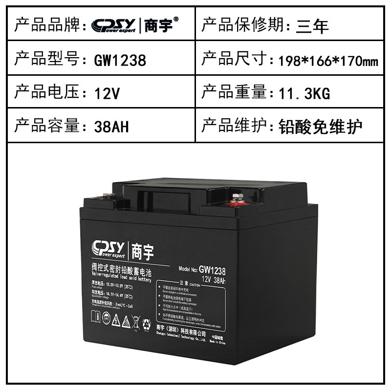 商宇(CPSY)UPS不間斷電源電池 商宇原裝電池 商宇電池 GW1238 自營(yíng)