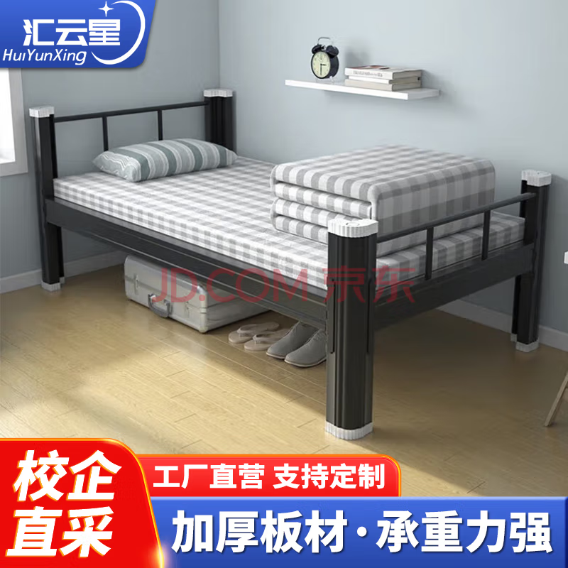 匯云星鐵藝床學生宿舍上下鋪高低床鋼制單層床鐵架床 0.9米寬白單層